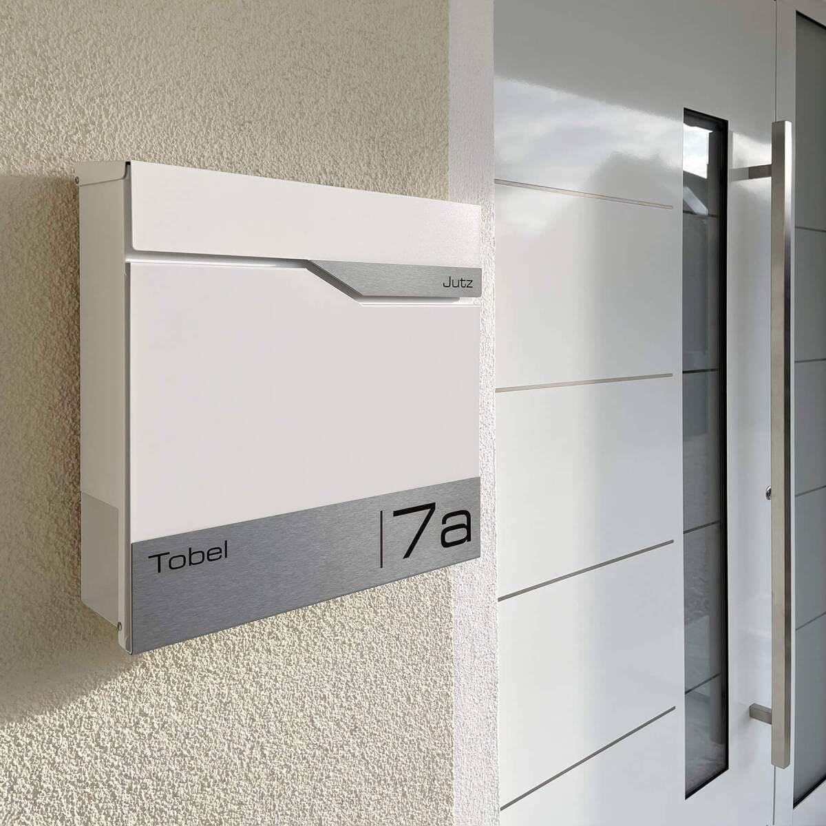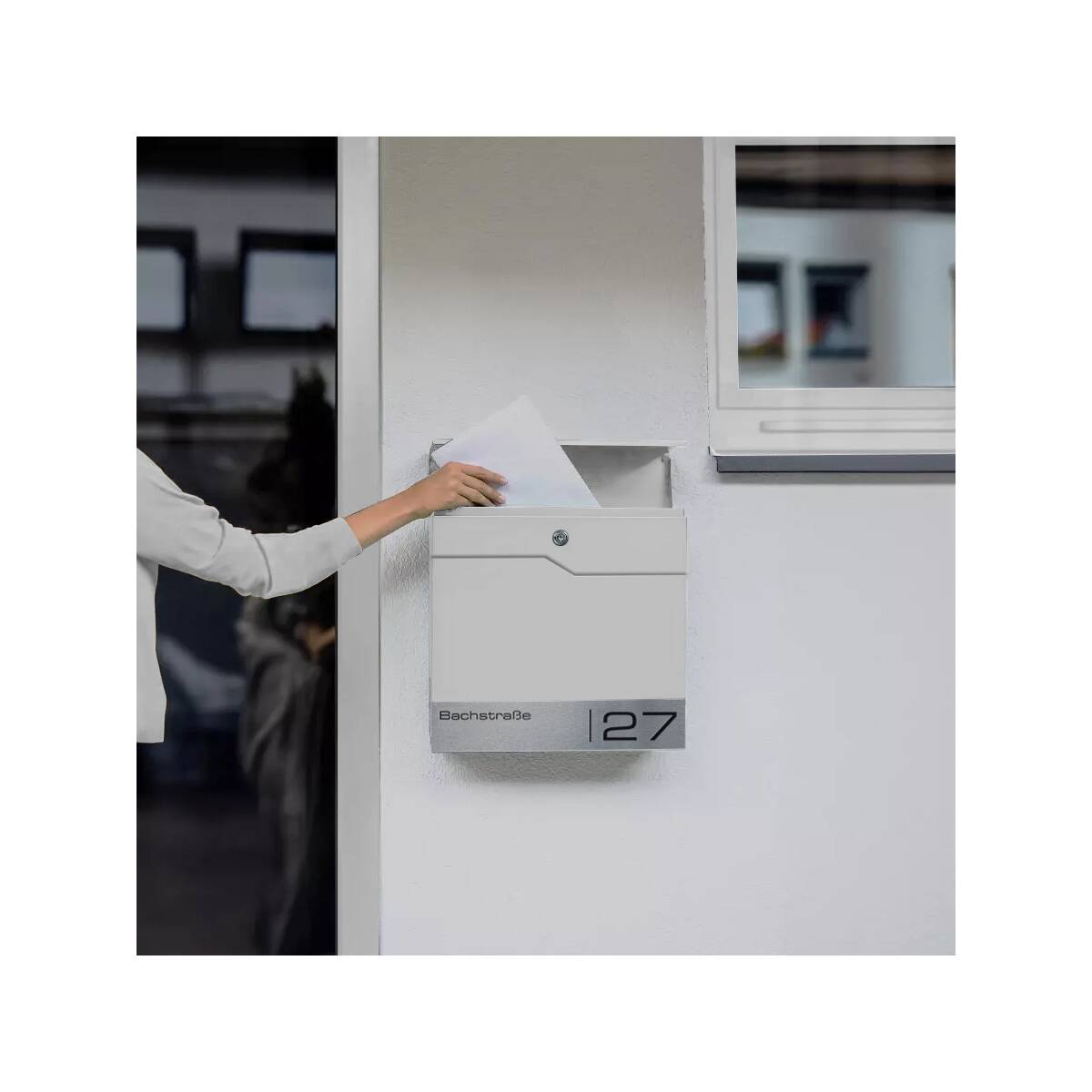 Dank geradlinigem Design und edler Gravurleisten harmonisiert der Briefkasten in jeder Umgebung und wird auch in Ihrem Eingangsbereich zum Blickfang.
