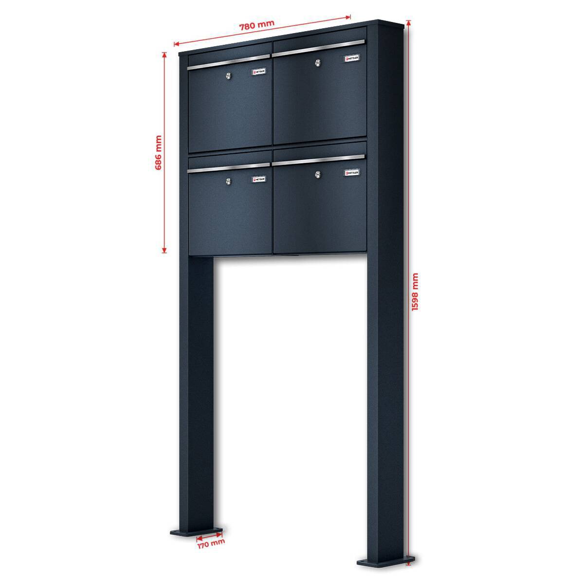 Metzler Briefkastenanlage für 4 Parteien, pulverbeschichtet in Anthrazitgrau RAL7016