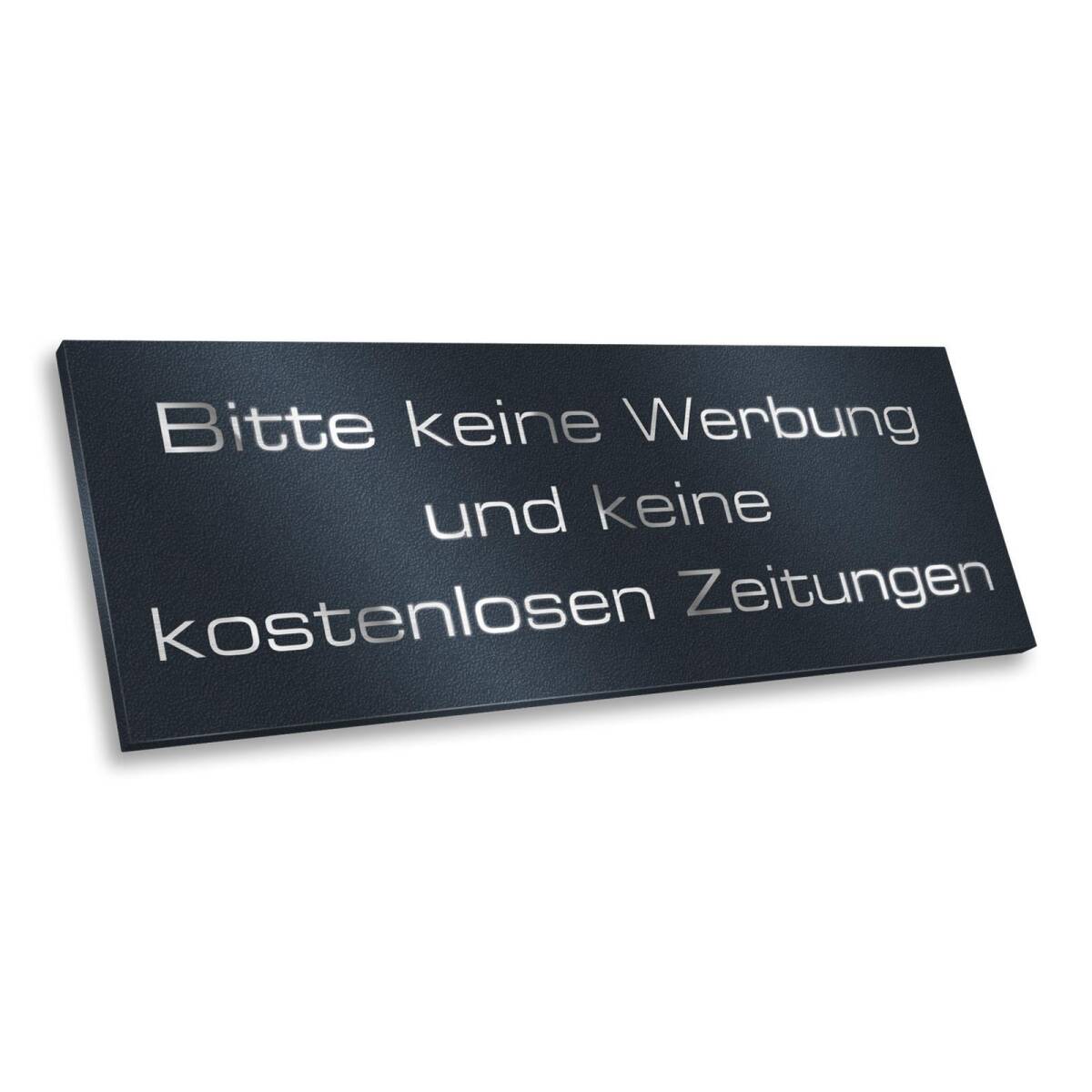 Metzler Edelstahl Briefkastenschild mit Lasergravur "Keine Werbung..." Pulverbeschichtet Anthrazit RAL7016
