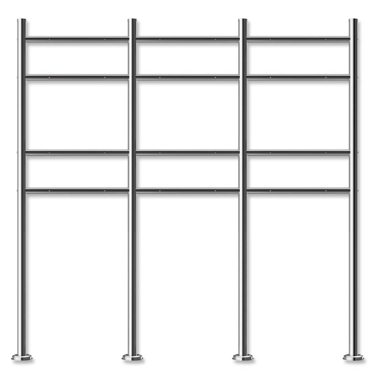 Der Metzler BriefkastenstĂ€nder aus Edelstahl ist unter anderem geeignet fĂŒr die BriefkĂ€sten Hoffmann, Stencil und Ebenhard. Mit einer Höhe von 142,2 cm und einer Breite von 147,6 cm ermöglicht der StandfuĂ eine kompakte Montage von 6 BriefkĂ€sten â ideal fĂŒr MehrfamilienhĂ€user.
