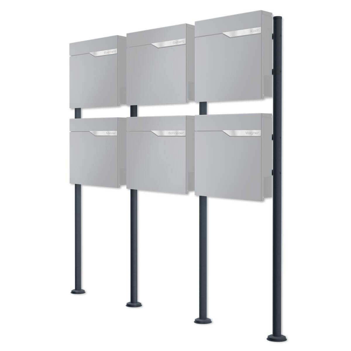 Robuster Standfuß aus verzinktem, pulverbeschichtetem Stahl – Ideal für Mehrfamilienhäuser, da er Platz für die Montage von sechs Briefkästen bietet.