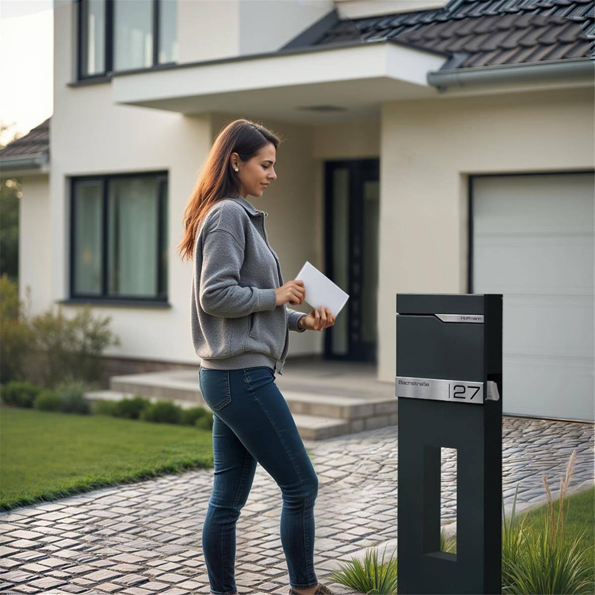 Der Briefkastenständer von Metzler überzeugt mit einer stabilen und langlebigen Konstruktion aus massivem Stahl. Dank der Pulverbeschichtung in RAL 7016 Anthrazit bleibt der Standbriefkasten UV- und witterungsbeständig, sodass Sonne, Regen, Schnee und Frost ihm nichts anhaben können. So kann Ihr Briefkasten flexibel platziert und aufgestellt werden, ohne die Hauswand zu beschädigen.