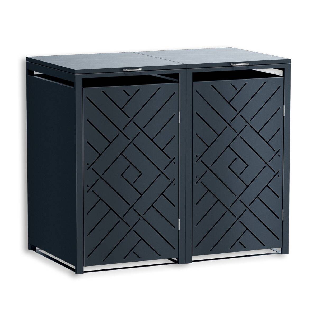 Metzler cache-poubelles en acier revêtu en poudre résistant aux intempéries avec couvercle automatique pratique pour 2 poubelles à volume de 60-240 litres