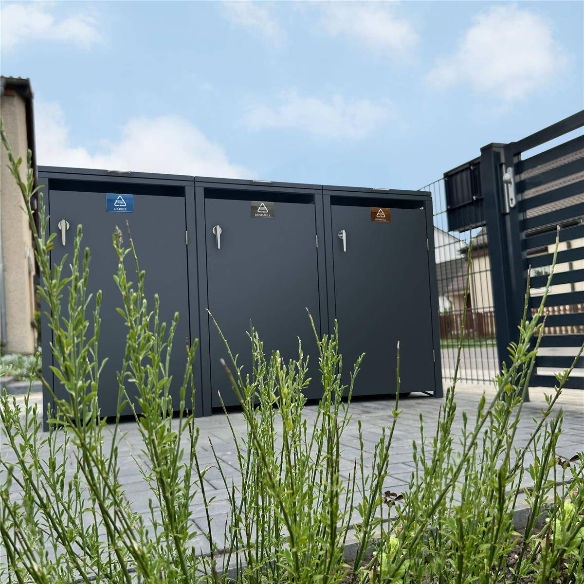 Cache-poubelles pour trois poubelles - revĂȘtu en RAL7016 gris anthracite mat.