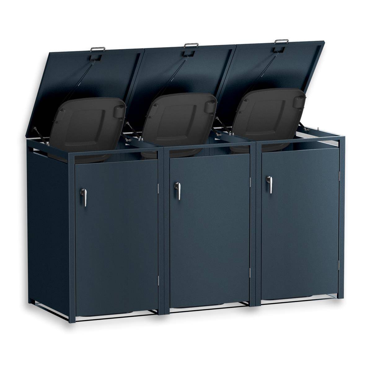 Metzler cache-poubelles en acier revĂȘtu en poudre rĂ©sistant aux intempĂ©ries avec couvercle automatique pratique pour 3 poubelles Ă  volume de 60-240 litres