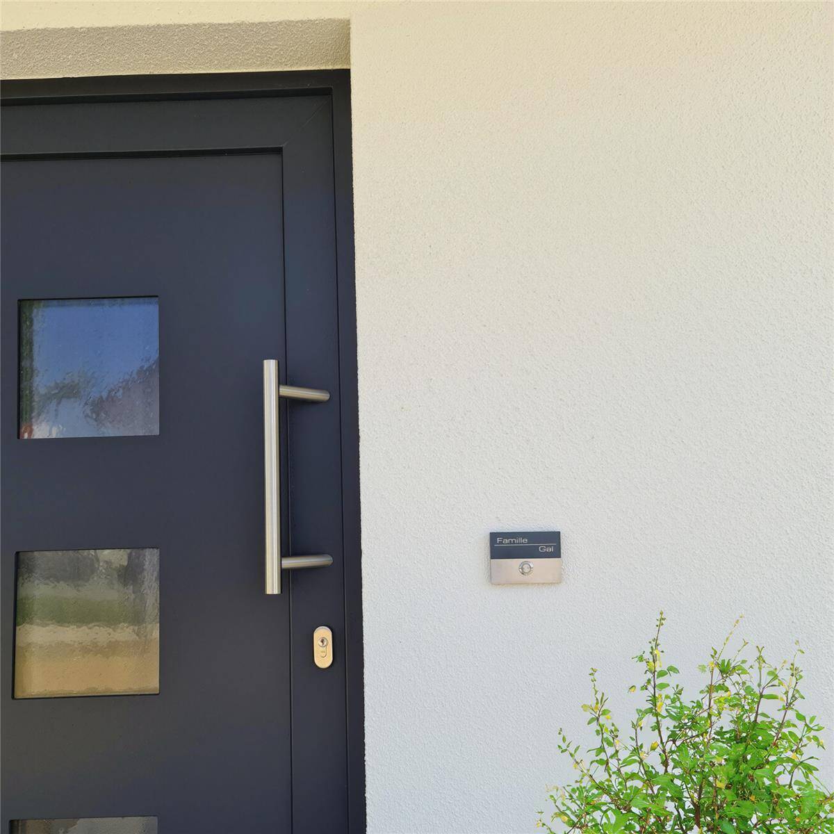 Il campanello si distingue per una combinazione di materiali di alta qualità. Grazie alle piastre superiore e inferiore in acciaio inox V2A e alla piastra in vetro acrilico antigraffio nel colore di tendenza Antracite RAL 7016, il vostro campanello è completamente resistente agli agenti atmosferici e rimarrà come nuovo per anni.