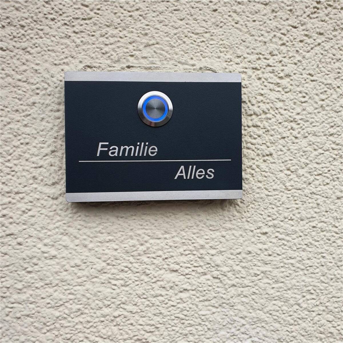 Moderno campanello da porta in antracite con pulsante a LED e incisione laser