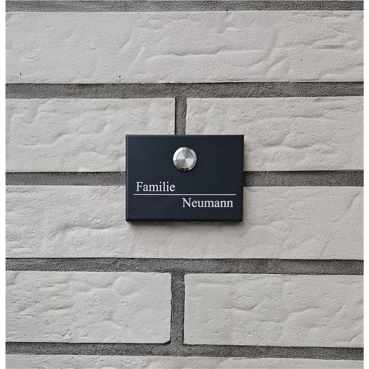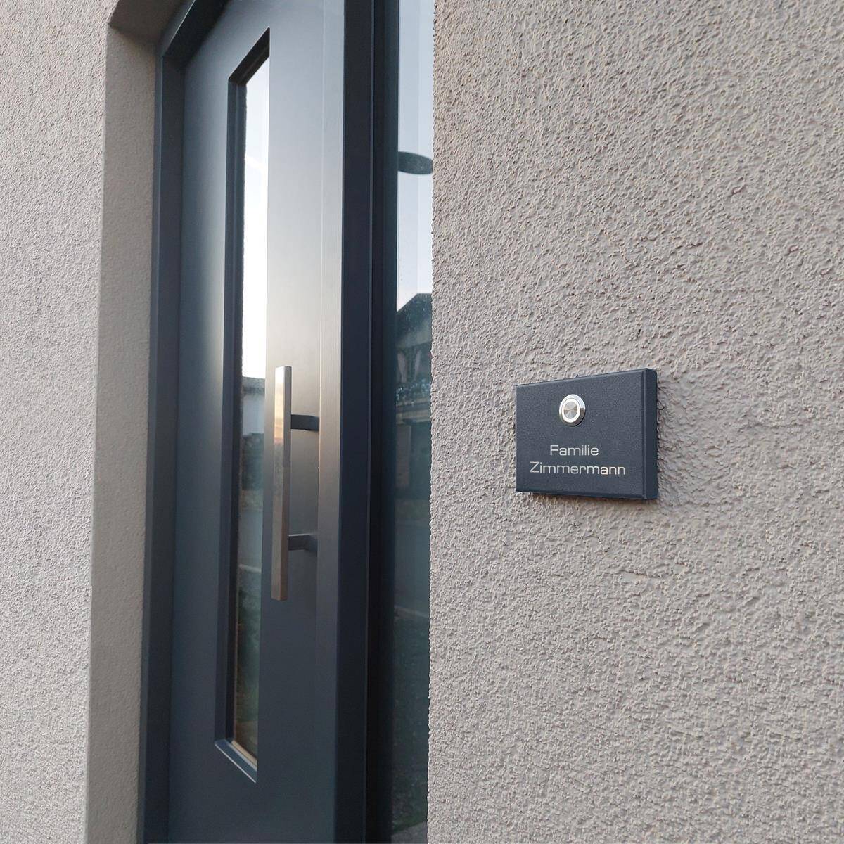 La piastra massiccia del campanello è realizzata in acciaio inox con un ulteriore rivestimento a polvere nel colore di tendenza Antracite RAL 7016. Questo rende la piastra assolutamente resistente alle intemperie, facile da pulire e durevole.