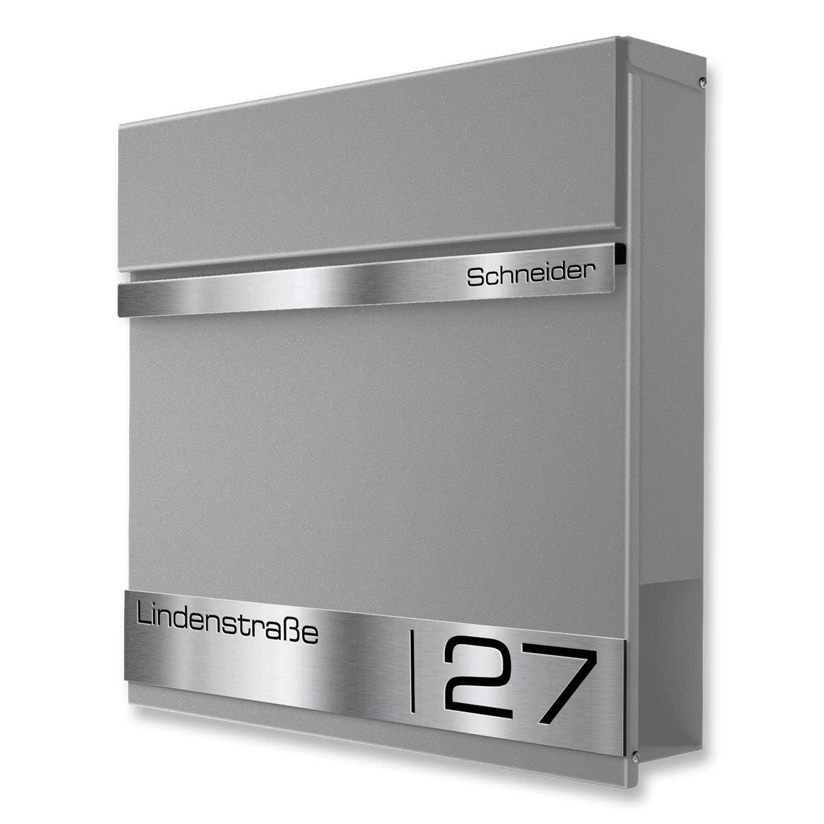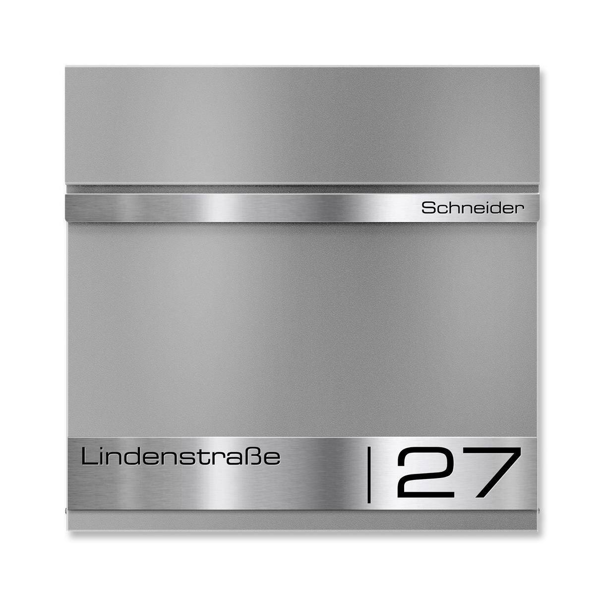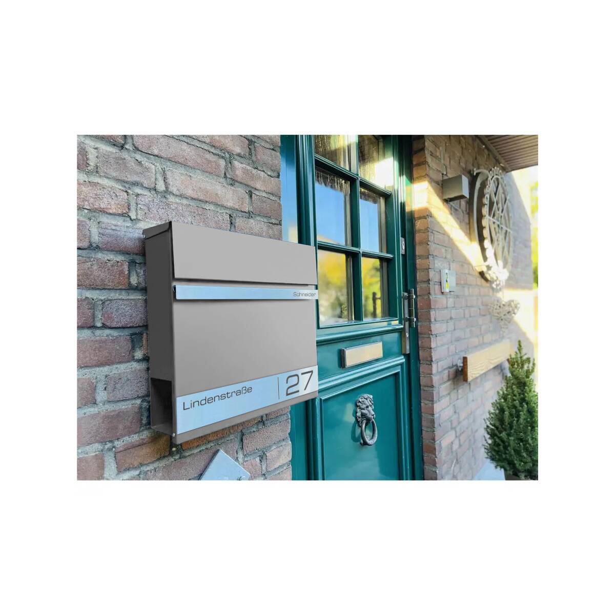 Un punto forte speciale è costituito dalle placche di incisione personalizzabili in acciaio inossidabile V4A, che possono essere incise al laser con il vostro nome di famiglia e indirizzo. È possibile scegliere tra molti font moderni per dare un tocco individuale alla vostra casella postale.