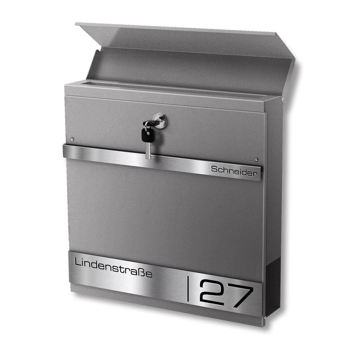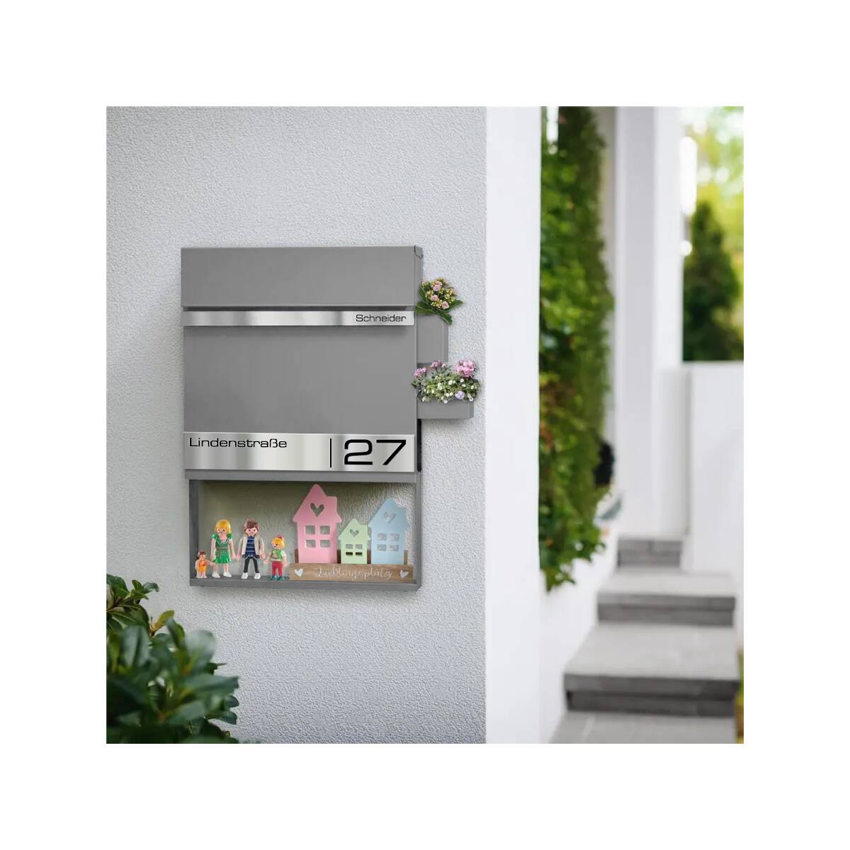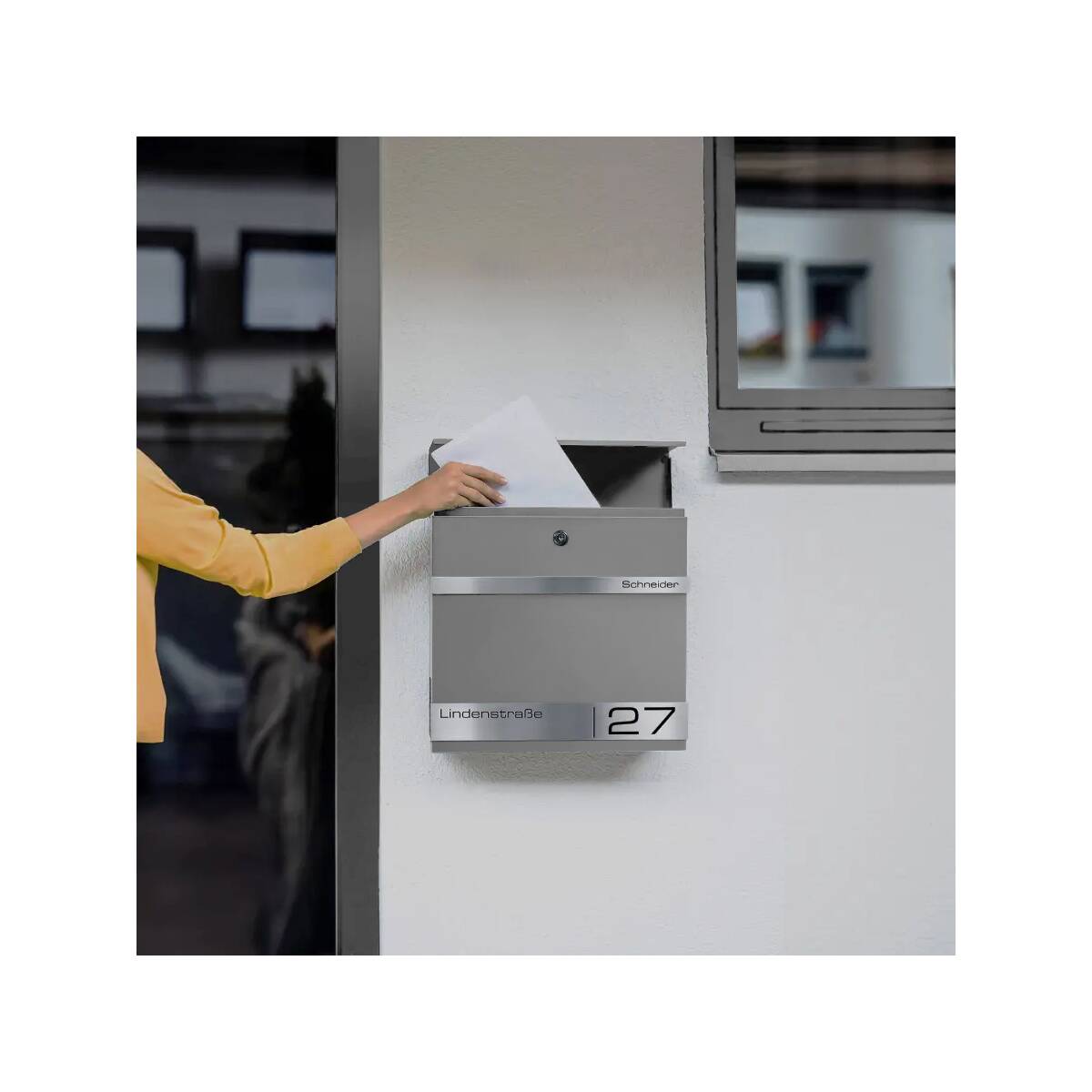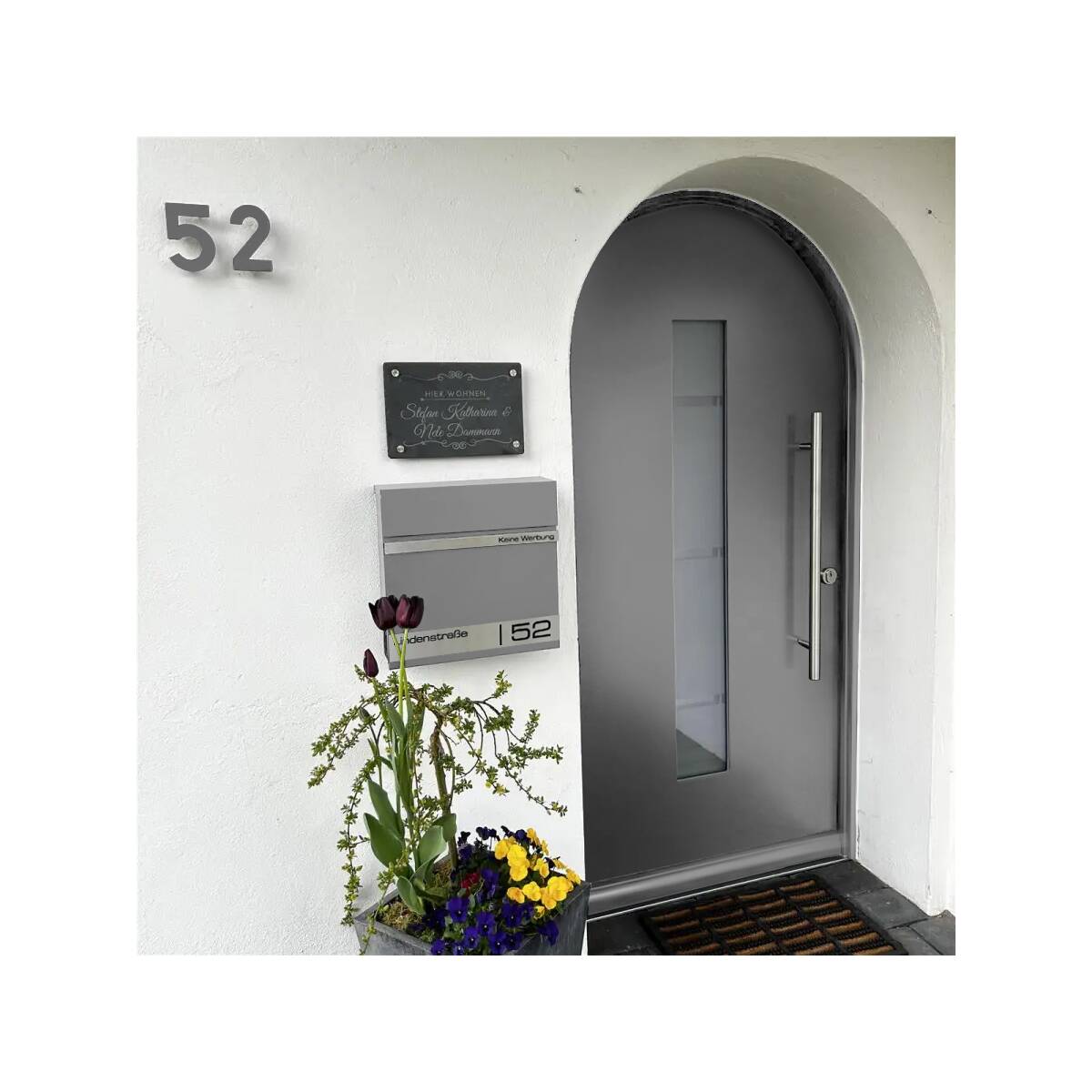 Un punto forte speciale è costituito dalle placche di incisione personalizzabili in acciaio inossidabile V4A, che possono essere incise al laser con il vostro nome di famiglia e indirizzo. È possibile scegliere tra molti font moderni per dare un tocco individuale alla vostra casella postale.