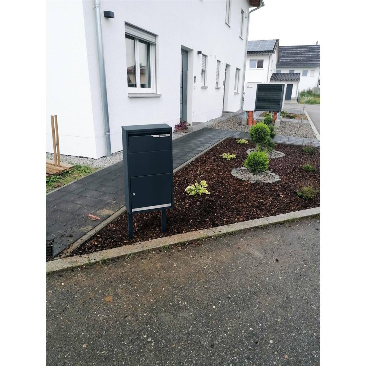 Ma non è solo la funzionalità a convincere, anche il design particolare. La cassetta postale e il supporto sono realizzati in acciaio di alta qualità, con una verniciatura a polvere in RAL7016 Grigio Antracite opaco. Pertanto, è estremamente resistente agli agenti atmosferici e rimarrà come nuova per anni.
