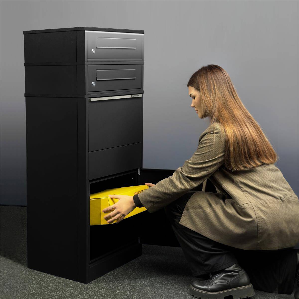 La Metzler cassetta pacchi e cassetta postale in uno offre la soluzione ideale per una consegna affidabile della tua posta e dei tuoi pacchi 24 ore su 24 e completamente senza contatto. Grazie alla capacità generosa, è possibile stipare contemporaneamente più pacchi nella cassetta, per cui non ci sono problemi se ci si aspetta più ordini o se non si è a casa. I viaggi alla prossima stazione di ritiro diventeranno un ricordo del passato. Particolarmente adatta grazie ai due compartimenti postali separati, questa cassetta pacchi è ideale per case generazionali, case bifamiliari o a schiera.