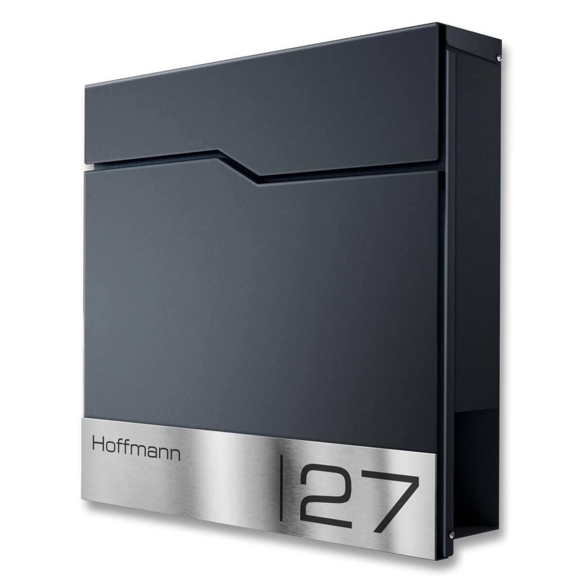 La semplice, ma elegante cassetta postale è realizzata in acciaio inox V2A di alta qualità e resistente alla ruggine. La cassetta è abbellita da pannelli in acciaio inox con incisione laser. Per l'incisione, è possibile scegliere tra diversi caratteri moderni. Per rendere la cassetta postale ancora più resistente alle intemperie, la striscia in acciaio inox viene sottoposta a un laborioso processo di verniciatura a polvere dopo il taglio laser. In questo modo, né il vento né le intemperie possono danneggiare la cassetta postale.