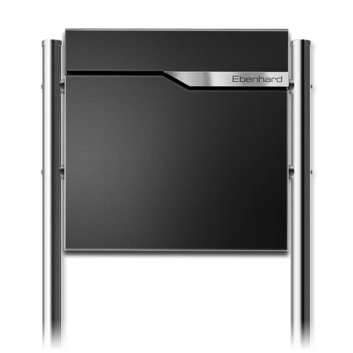 Moderna cassetta postale da terra Ebenhard in nero con targhetta autoadesiva in acciaio inox