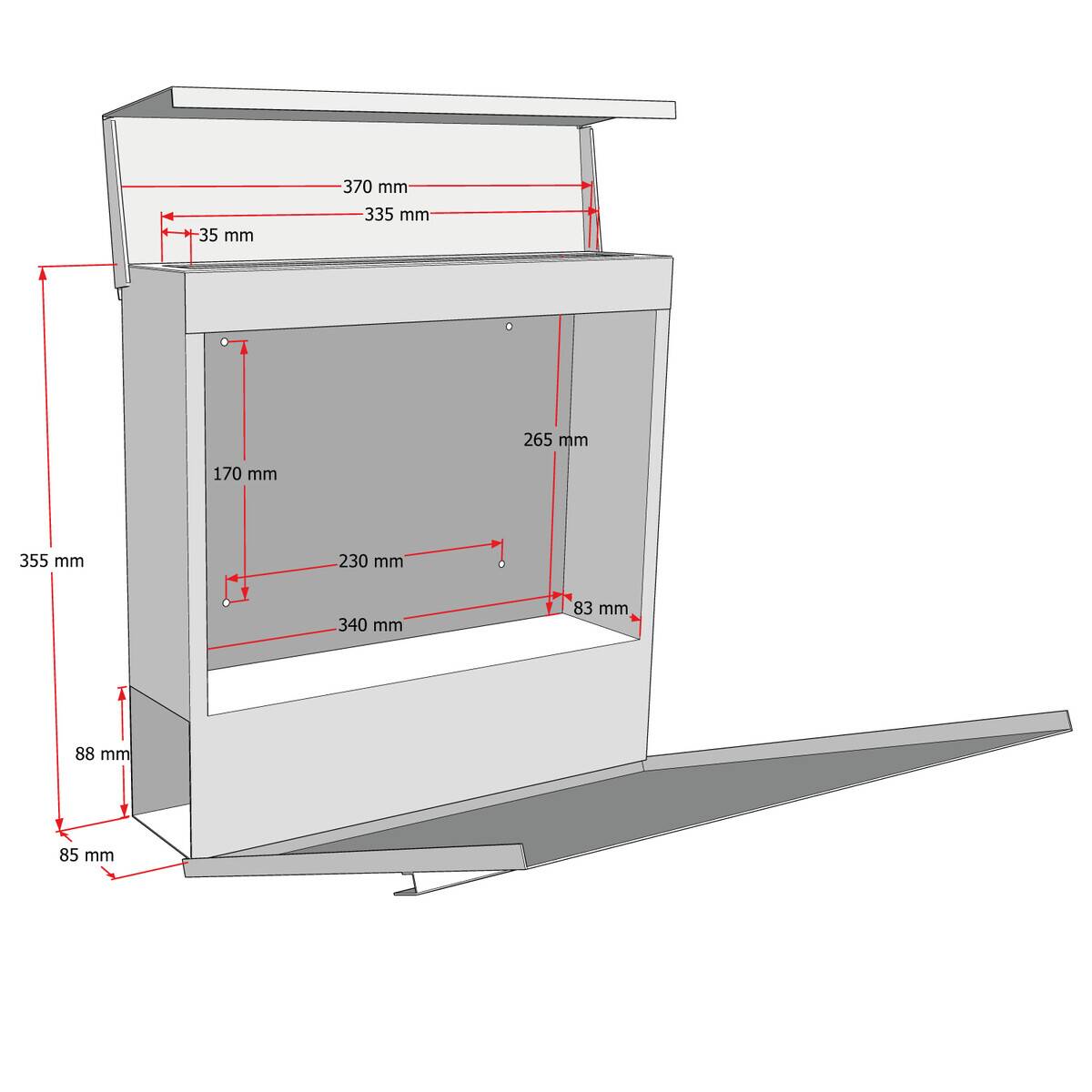 - 370 x 370 x 105 mm