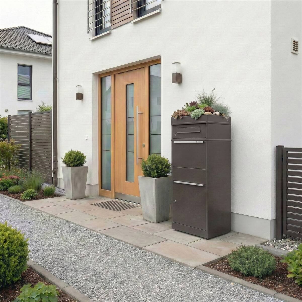 Dai un tocco moderno ed elegante all’ingresso della tua casa con questa pratica cassetta pacchi Metzler e ricevi pacchi in modo sicuro e affidabile, in qualsiasi momento.