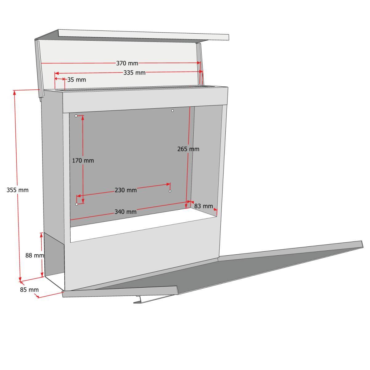 La generosa apertura per l'inserimento garantisce che buste fino al formato A4 / C4 possano essere inserite senza piegarsi. Allo stesso tempo, protegge la serratura nascosta della cassetta postale dagli agenti atmosferici e dal gelo.