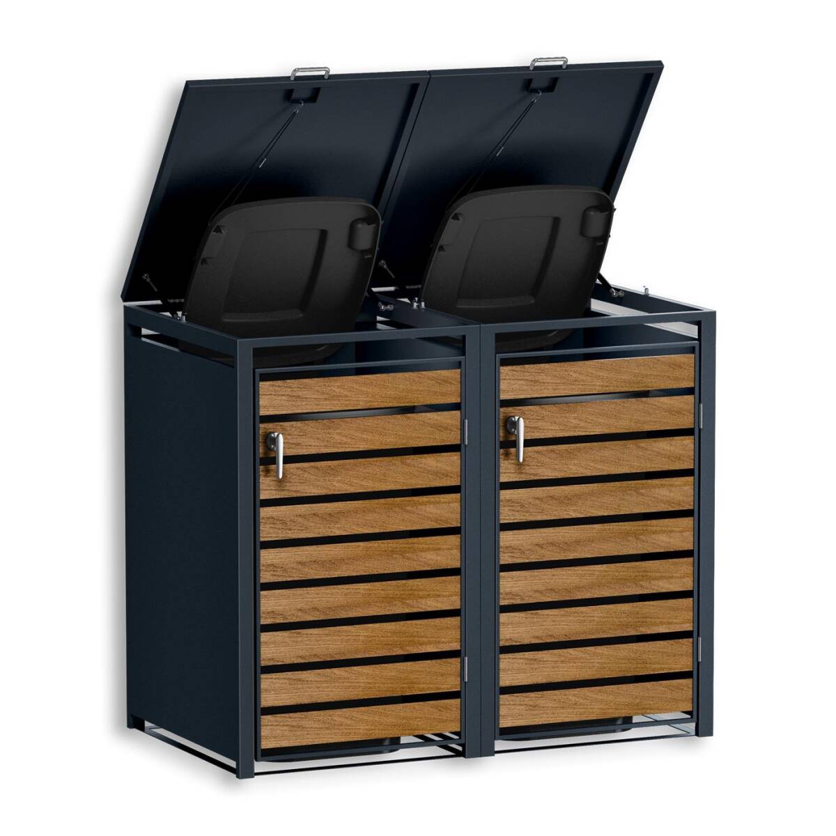 Metzler Contenitore per Bidoni della Spazzatura in Acciaio Resistente alle Intemperie con Coperchio Automatico per 2 Bidoni da 60-240 Litri di CapacitÃ