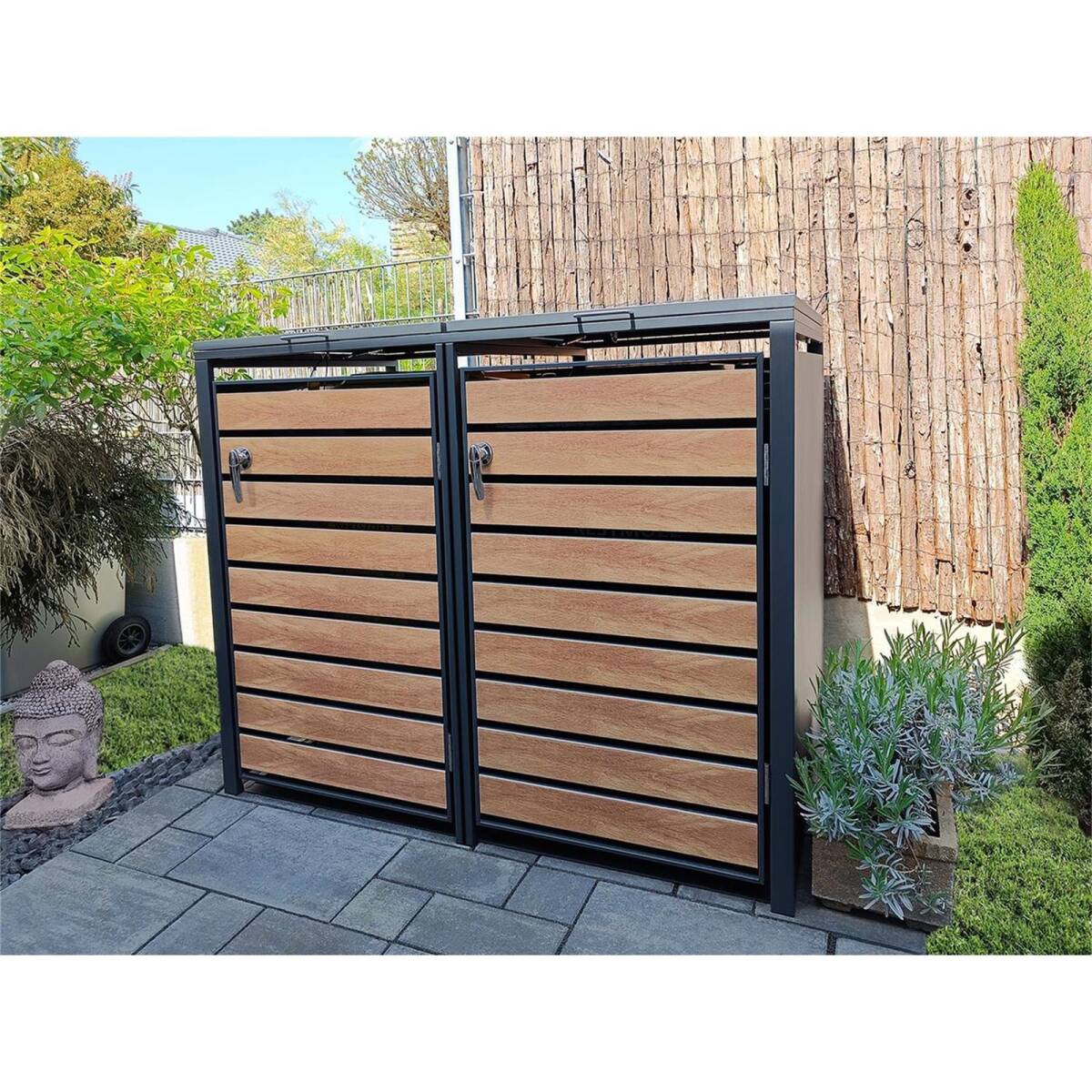 Il contenitore per bidoni della spazzatura Metzler, resistente alle intemperie e rivestito a polvere in grigio antracite RAL7016, è la soluzione più pratica ed elegante per riporre i propri bidoni in modo discreto e ordinato. Realizzato in acciaio di alta qualità , secondo la nota qualità Metzler, questo contenitore offre una costruzione estremamente durevole, ben progettata e robusta che resiste all'uso per anni anche nelle condizioni ambientali più avverse.