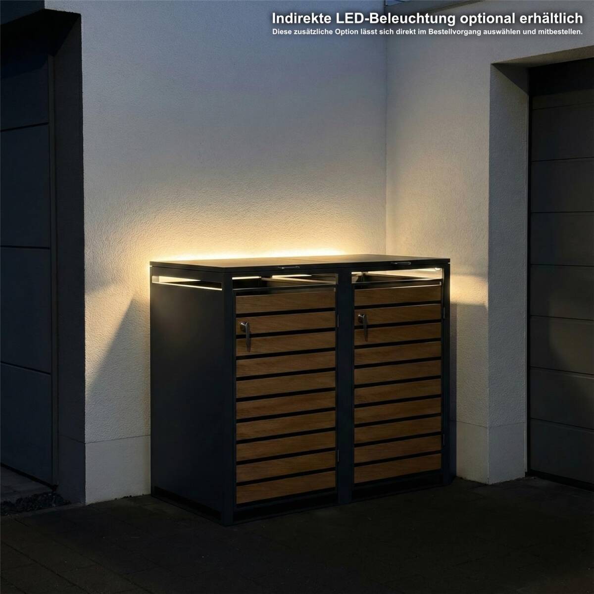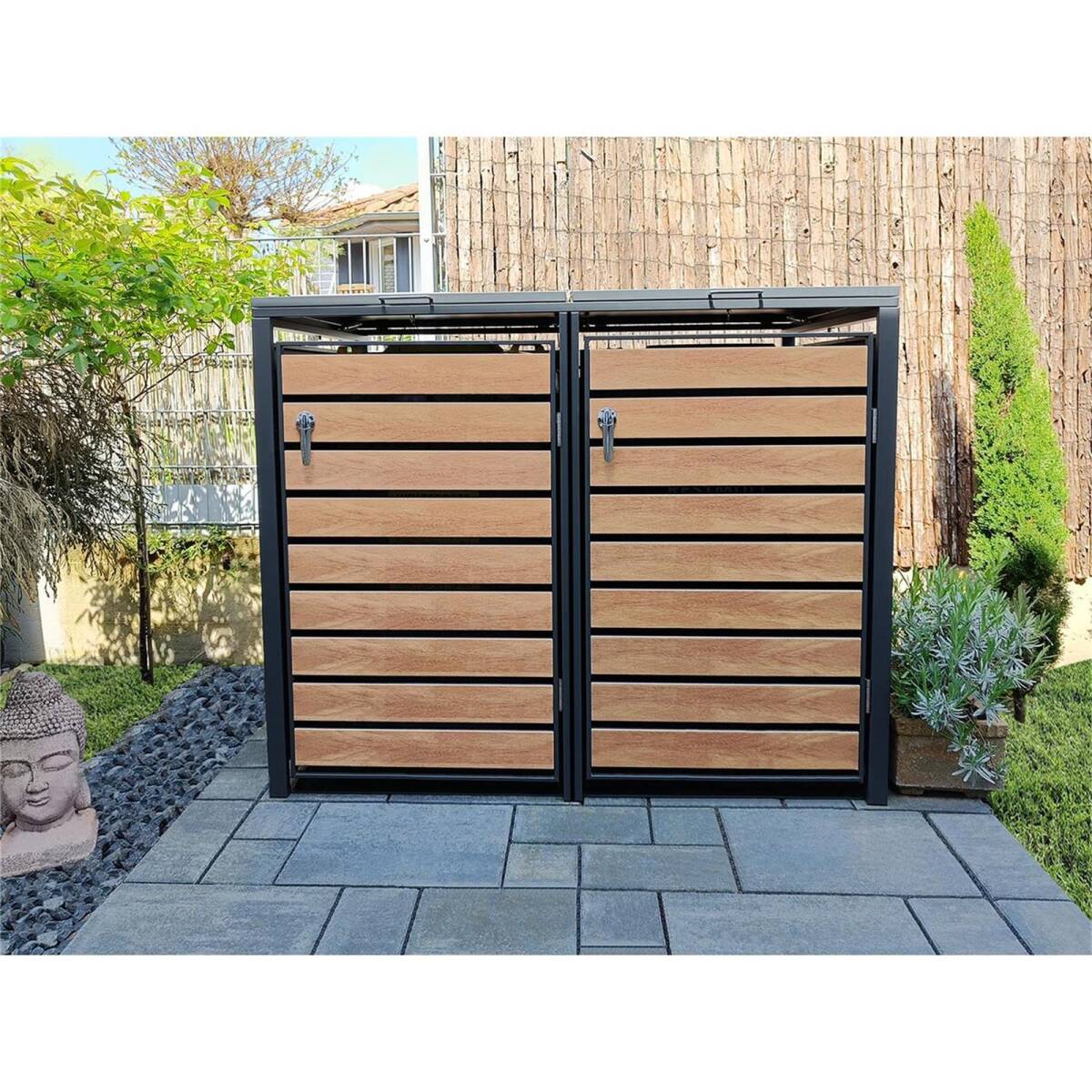 - Modularmente combinabile con tutti i contenitori per bidoni della spazzatura Metzler e il pratico scaffale per legna da ardere/attrezzi