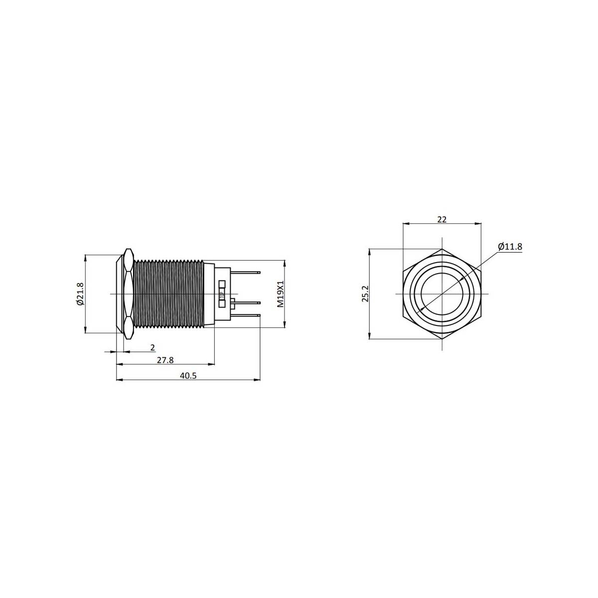 - Einbaudurchmesser: 19mm