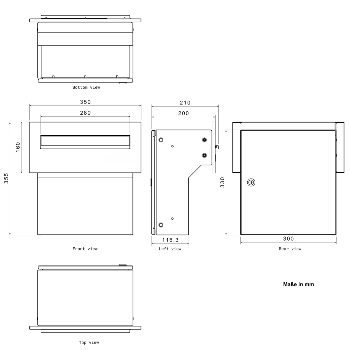 - Einwurf außen, Entnahme innen für bequeme Postentnahme.