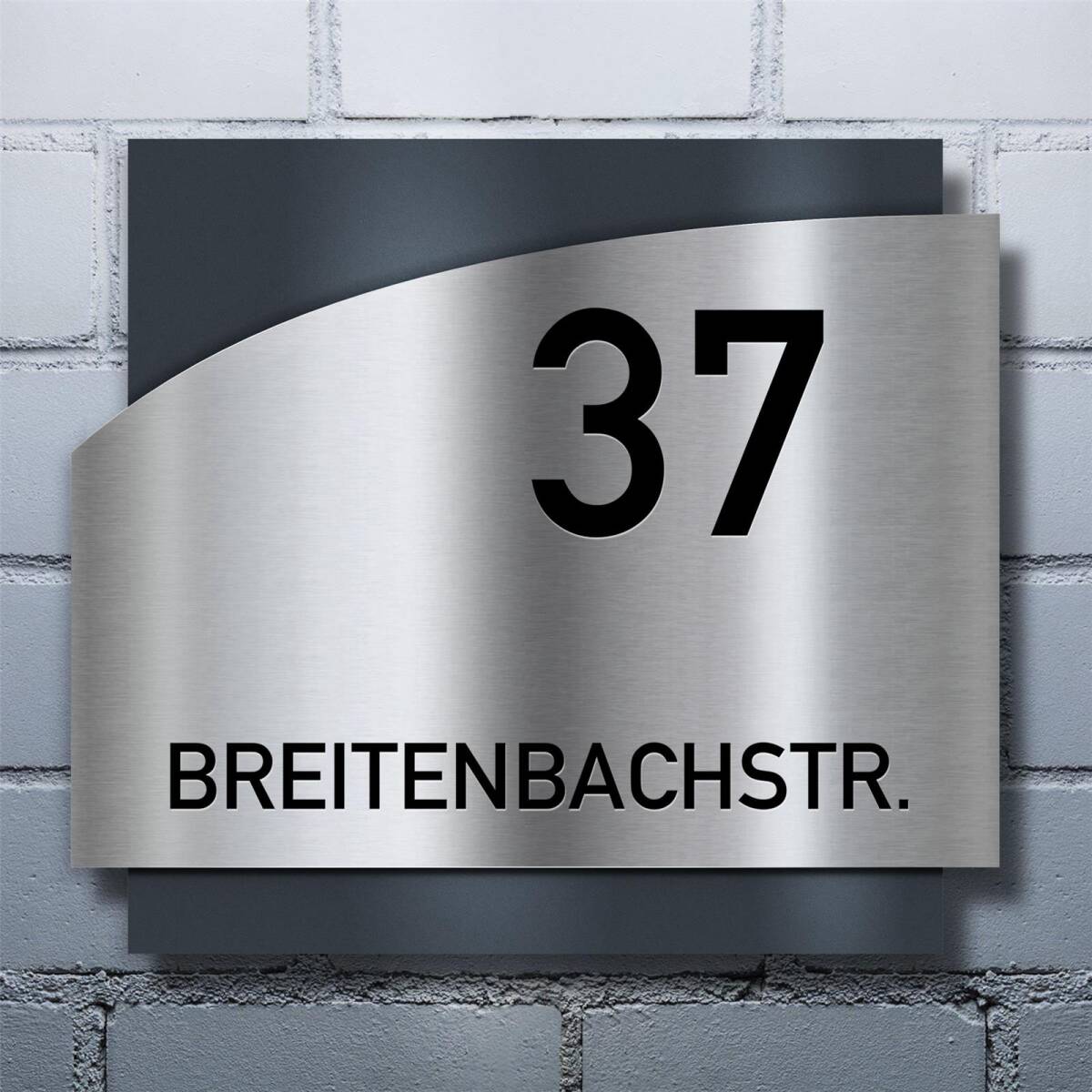 Metzler modernes Hausnummernschild aus Edelstahl in Anthrazit