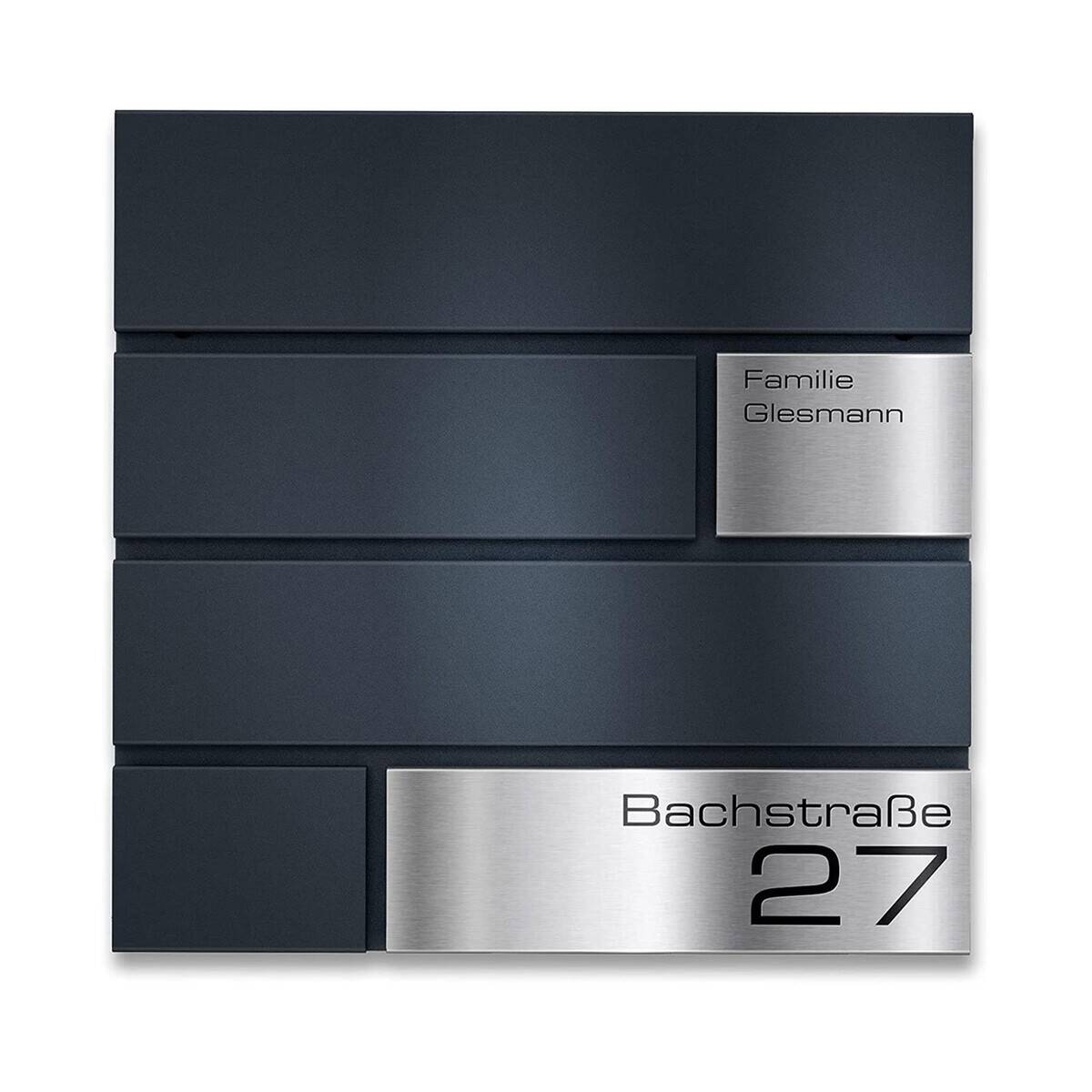 Auf dem Edelstahlschild können Sie Ihre Straße und Hausnummer eingravieren lassen. Für die individuelle Lasergravur können Sie aus zahlreichen verschiedenen Schriftarten wählen. So wird das Schild und Ihr Briefkasten zu einem wertigen Unikat.