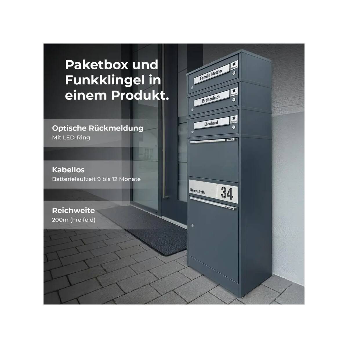 Metzler Briefkasten und Paketbox mit Funkklingel