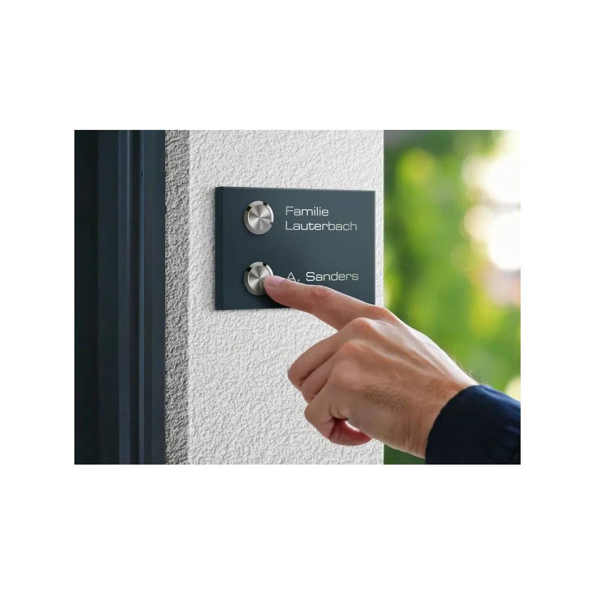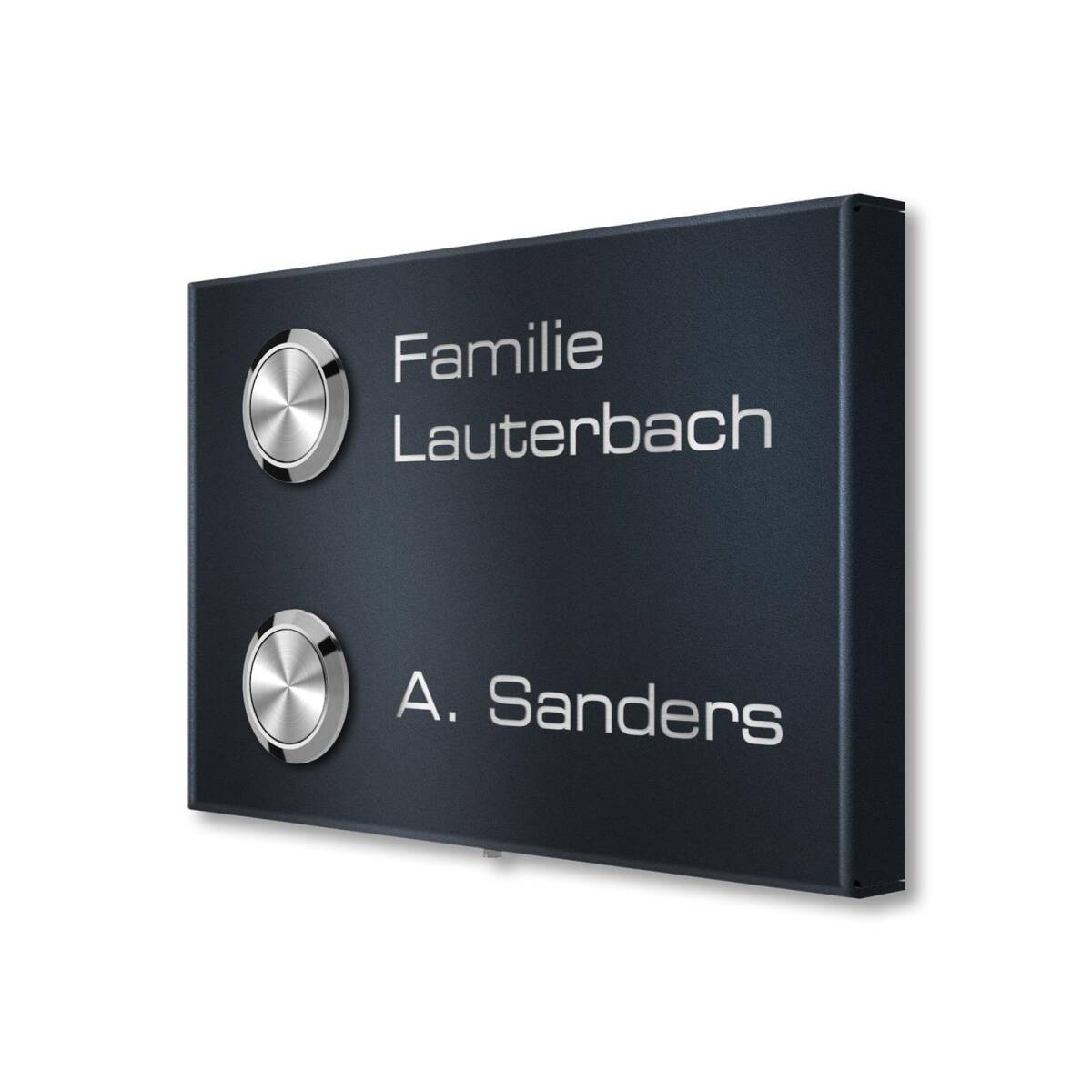 Die massive Klingelplatte wird aus rostfreiem Edelstahl gefertigt. Dadurch ist die Tafel absolut witterungsbeständig, pflegeleicht und langlebig.