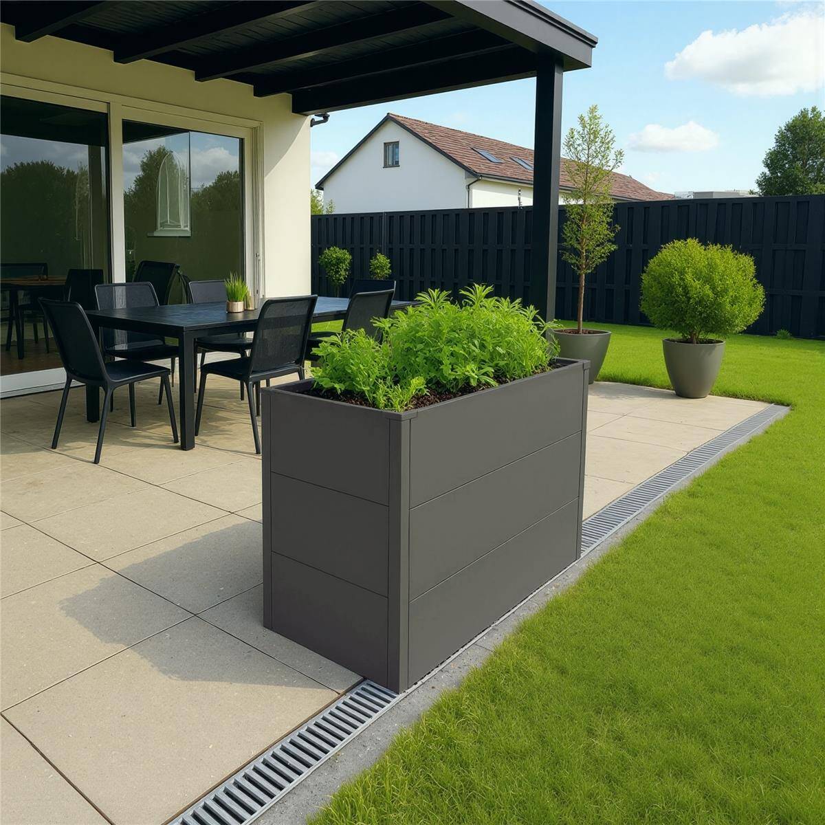 Mit unserem Hochbeet können Sie auch auf kleinem Raum frische Kräuter, Gemüse und vieles weitere anbauen. Dieses praktische Gartenaccessoire ist perfekt für alle, die ihre eigenen Kräuter und Gemüse anbauen möchten, ohne viel Platz in Anspruch nehmen zu müssen. Das Hochbeet besteht aus robustem und langlebigem Stahl und verfügt über ein modernes Design. Durch seine Größe lässt es sich einfach in jedem Garten aufstellen und ist hier ein echter Eyecatcher. Das stabile Hochbeet kann mit entsprechender Bepflanzung auch ideal als Sichtschutz eingesetzt werden. Der Aufbau des Hochbeets ist kinderleicht und schnell durchgeführt. Somit haben Sie Ihr eigenes DIY-Projekt direkt in Ihrem Garten!