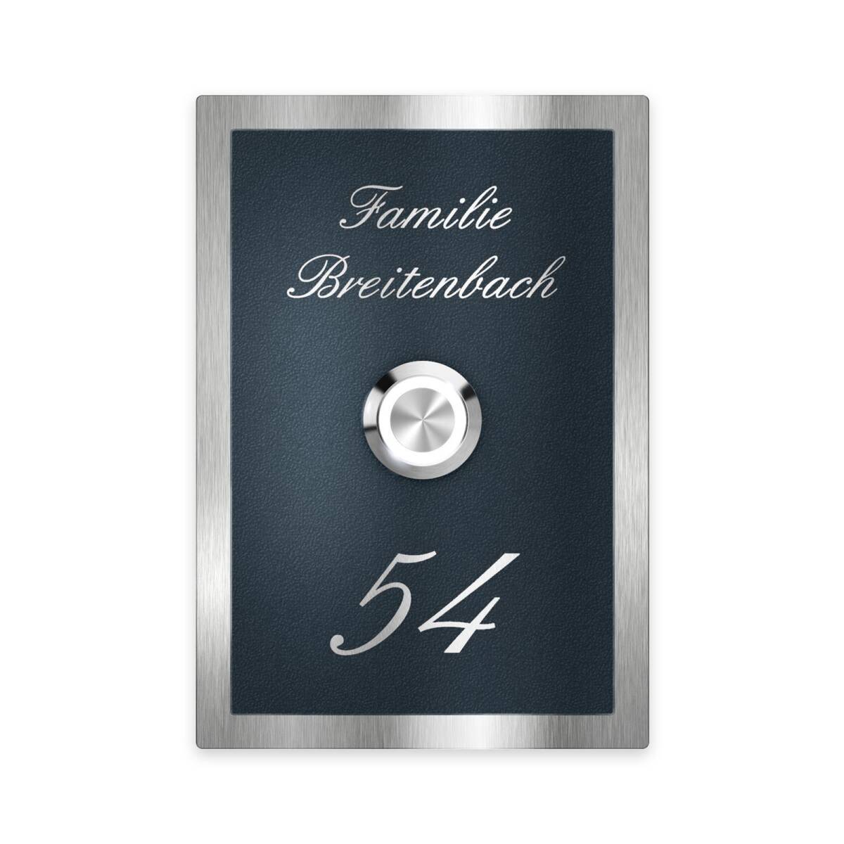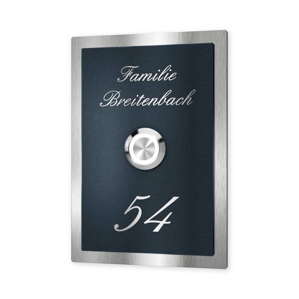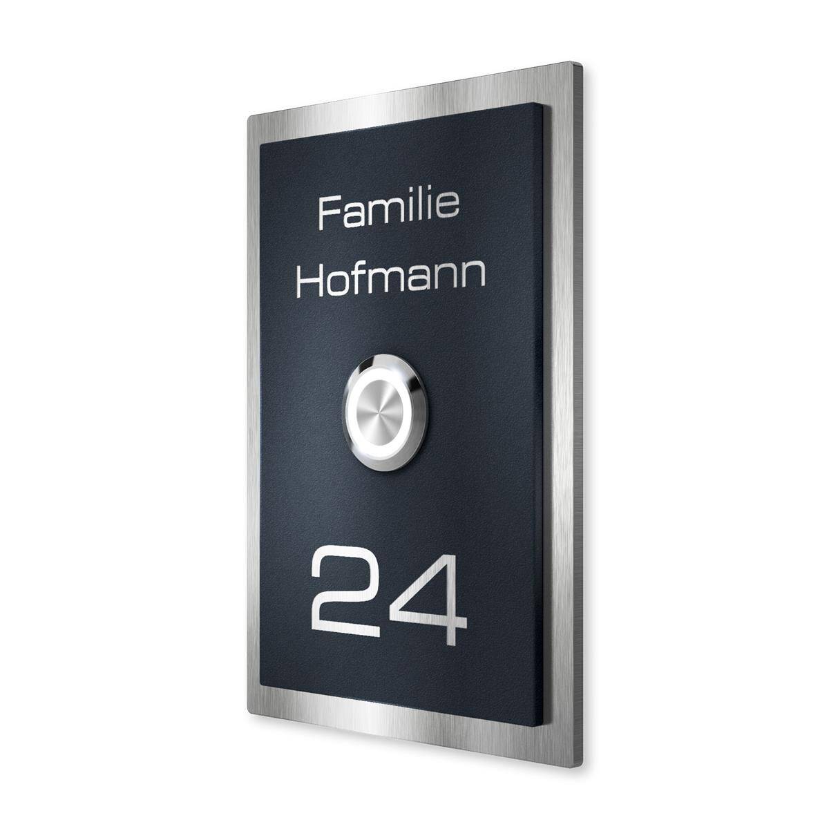 Klingelschild aus Edelstahl mit LED-Taster und optionaler Gravur