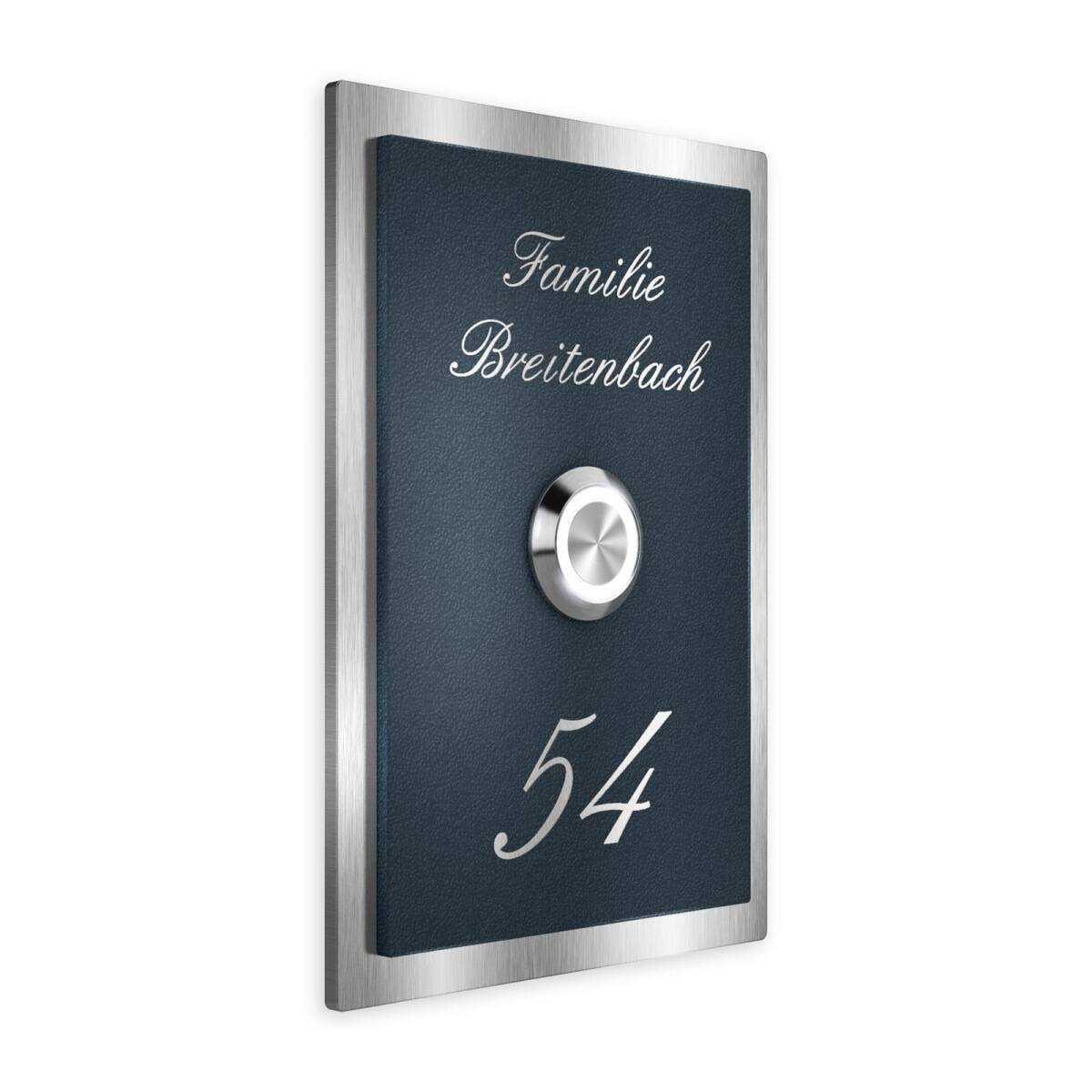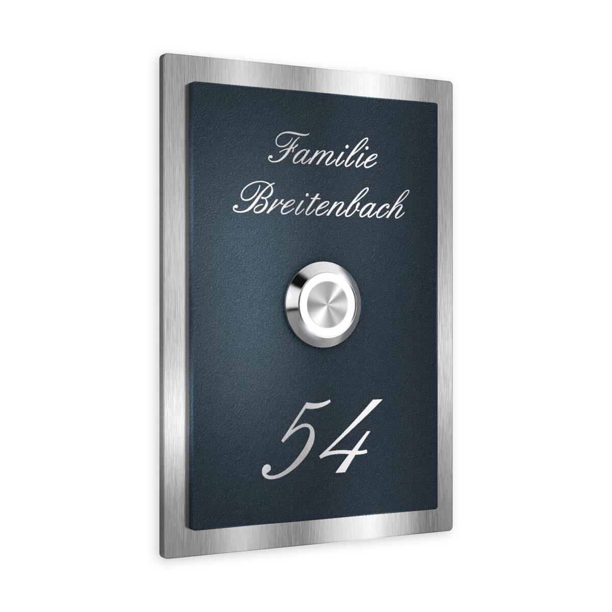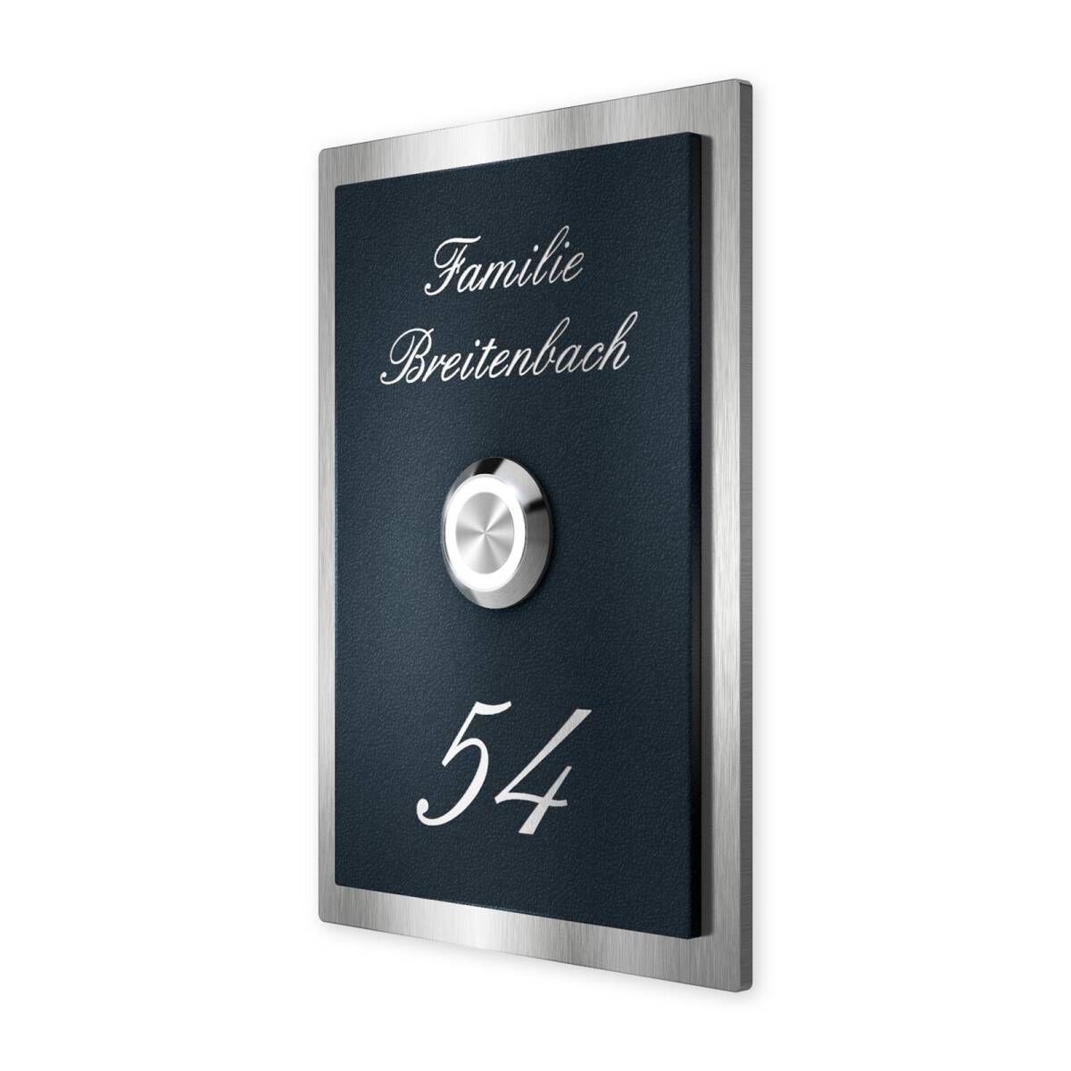 Klingelschild aus Edelstahl mit LED-Taster und optionaler Gravur