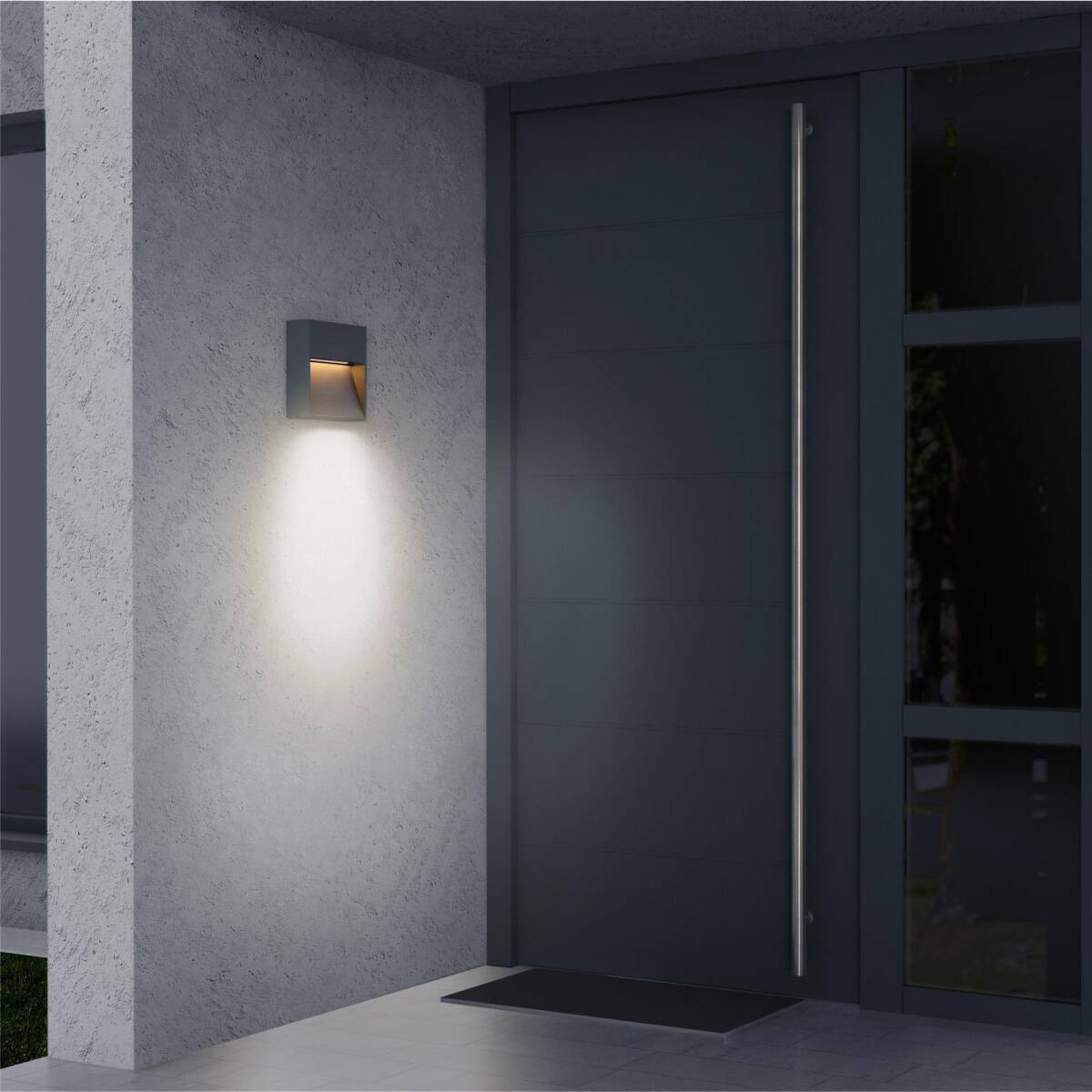 Verwandeln Sie die Fassade Ihres Hauses zu einem beeindruckenden Lichtermeer. Mit der Metzler LED Wandleuchte, IP 65 pulverbeschichtet in modernem Anthrazitgrau (RAL 7016). Bringen Sie die Fassade Ihres Hauses zum Leuchten und beeindrucken Sie Freunde und Nachbarn. Die starken, integrierten, warmweißen LED-Leuchtmittel erzeugen beeindruckende Lichteffekte an Ihrer Fassade. Vor allem beim Einsatz von mehr als einer Leuchte verschönert der Effekt die Hausfassade und sorgt für eine ausreichende, angenehm warme Beleuchtung.