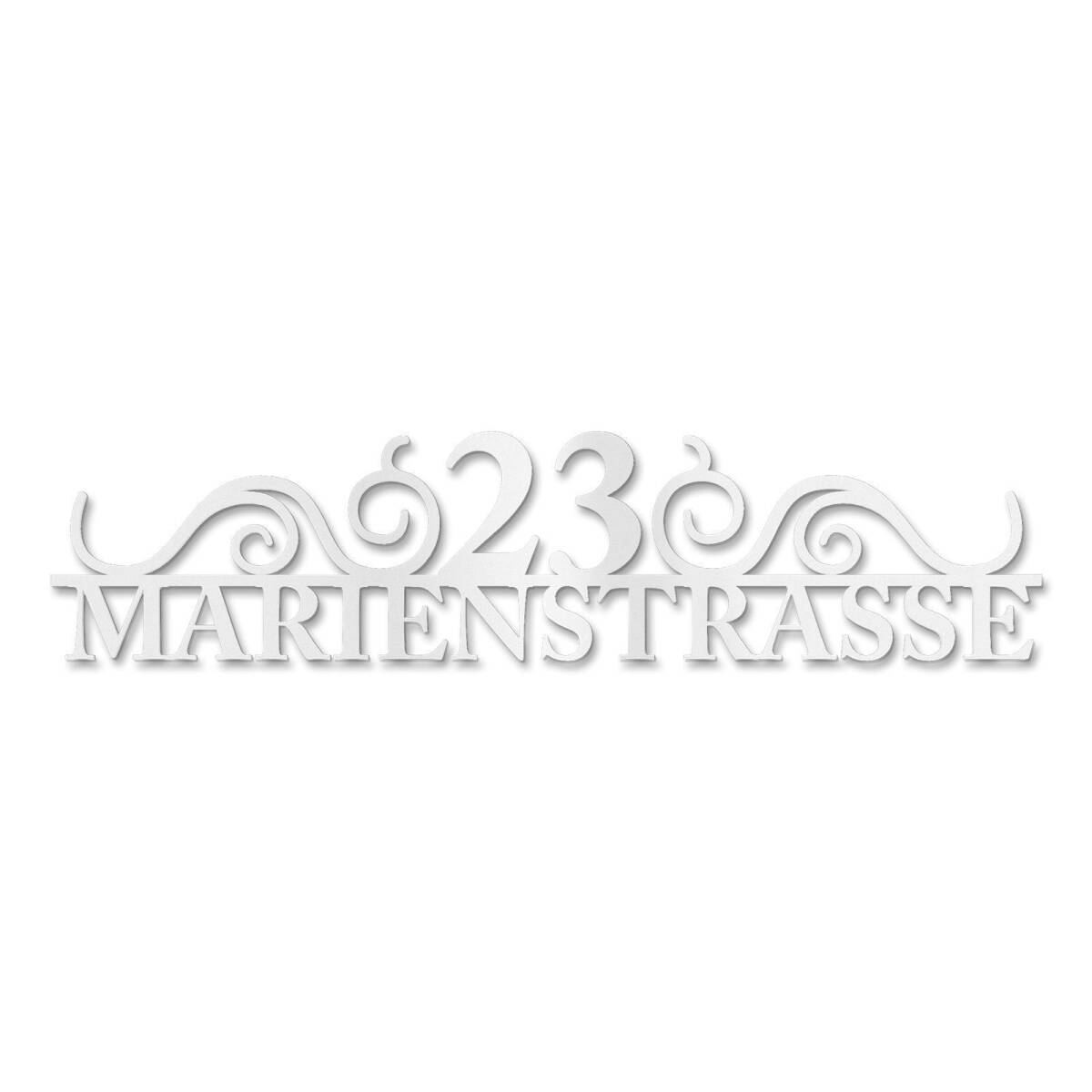 Lettrage avec rue & numéro de maison en acier inoxydable revêtu en poudre en RAL9016 blanc signalisation