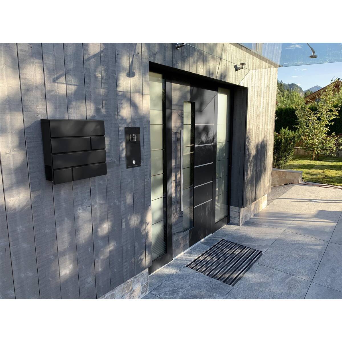 Wie schon gesagt, der Briefkasten vereint modernes Design und Funktionalität in einem: Das Zeitungsfach ist vollintegriert und lässt sich von beiden Seiten problemlos befüllen. Die großzügig gestaltete Einwurfklappe mit 335 x 35 mm fasst auch DIN A4 Umschläge, ohne diese zu knicken. Für ein harmonisches Gesamtbild wird das Briefkastenschloss elegant durch die Klappe verdeckt. So wird der Briefkasten zum echten Blickfang in Ihrem Eingangsbereich!