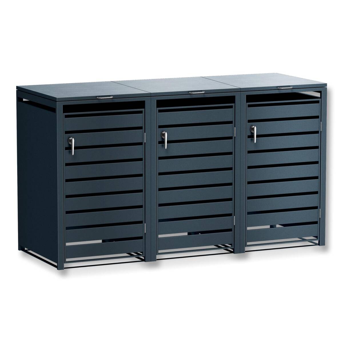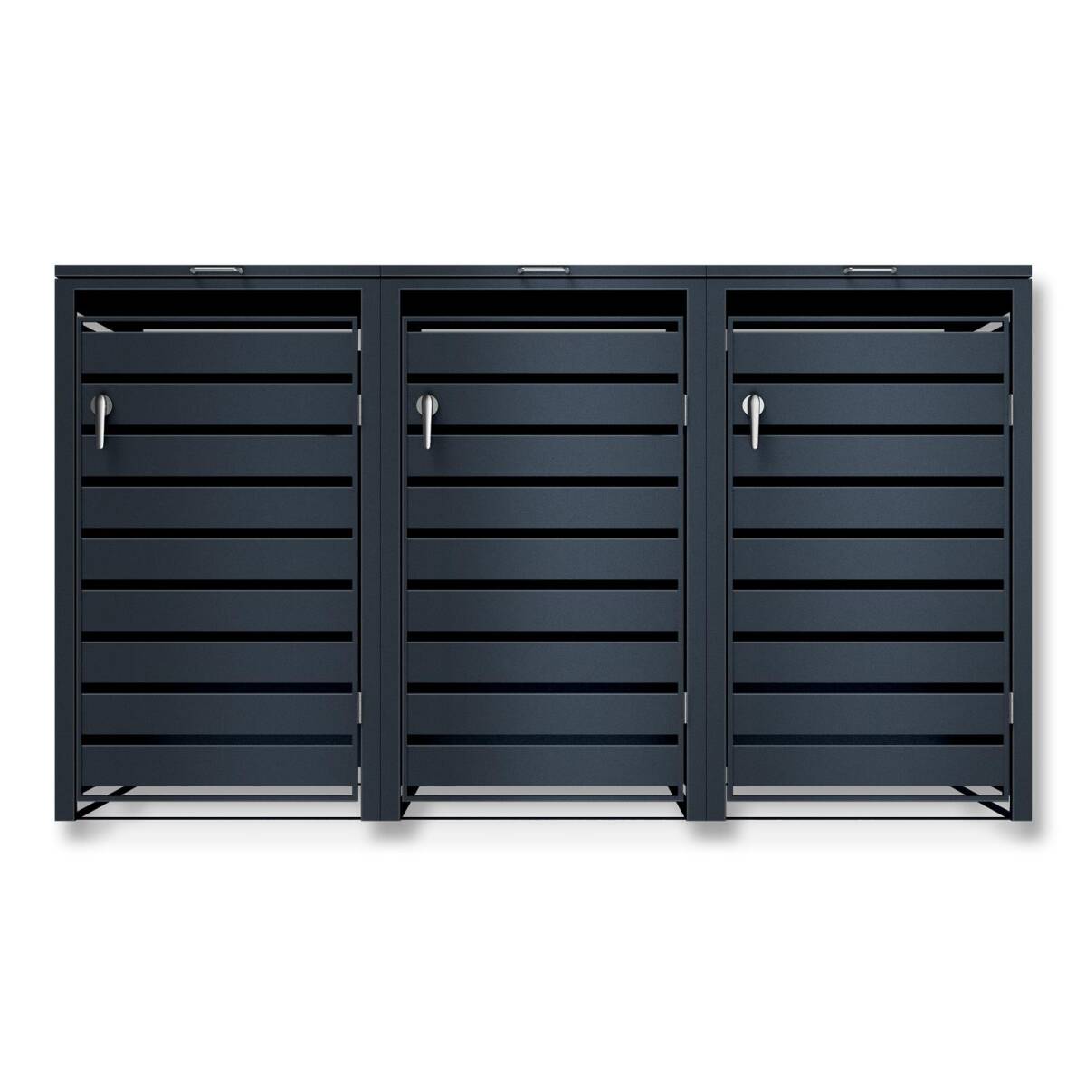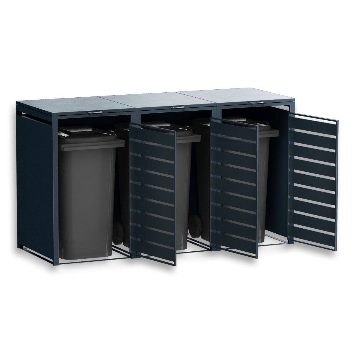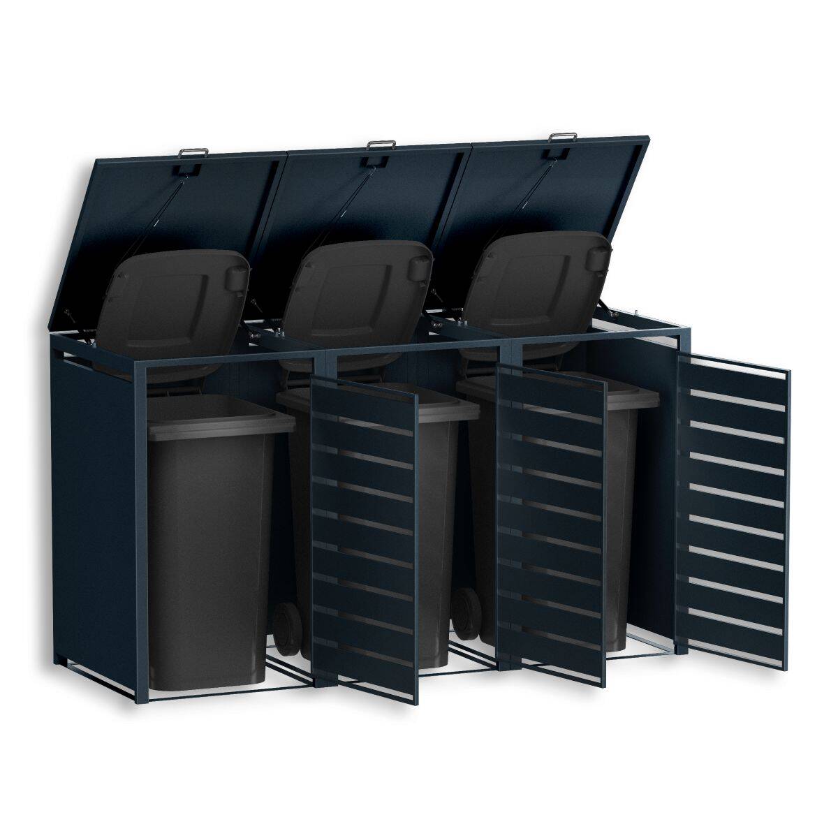 Metzler Mülltonnenbox aus witterungsbeständig pulverbeschichtetem Stahl mit praktischem Automatikdeckel für 3 Mülltonnen mit 60-240 Liter Fassungsvermögen