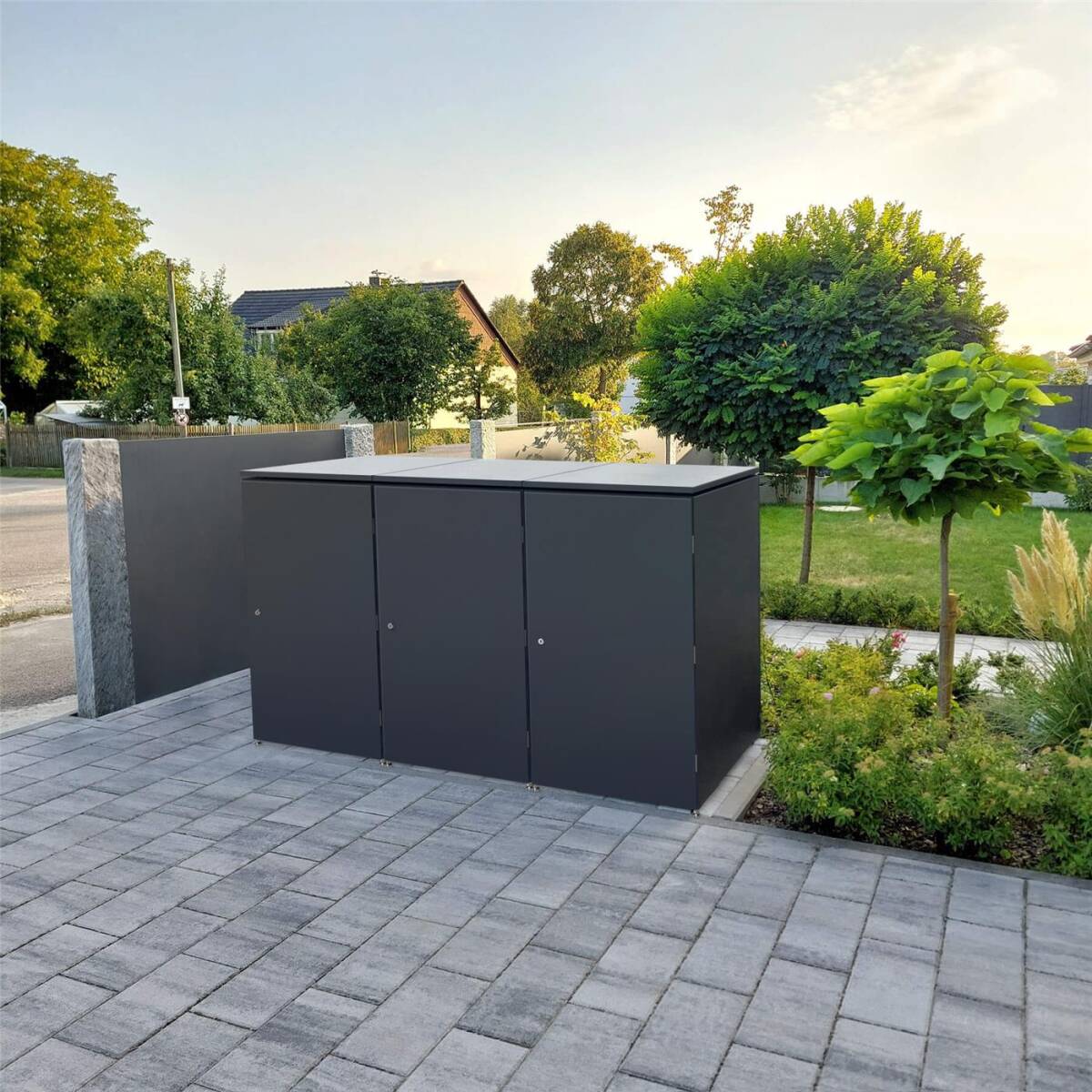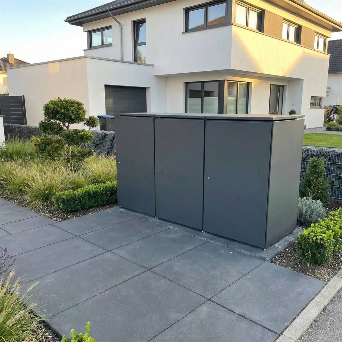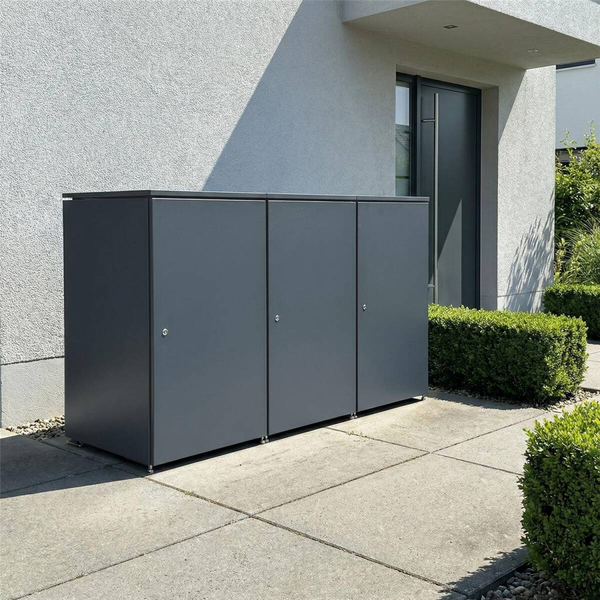 - Platz für drei Mülltonnen bis 240 L - Passend für alle gängigen Tonnengrößen