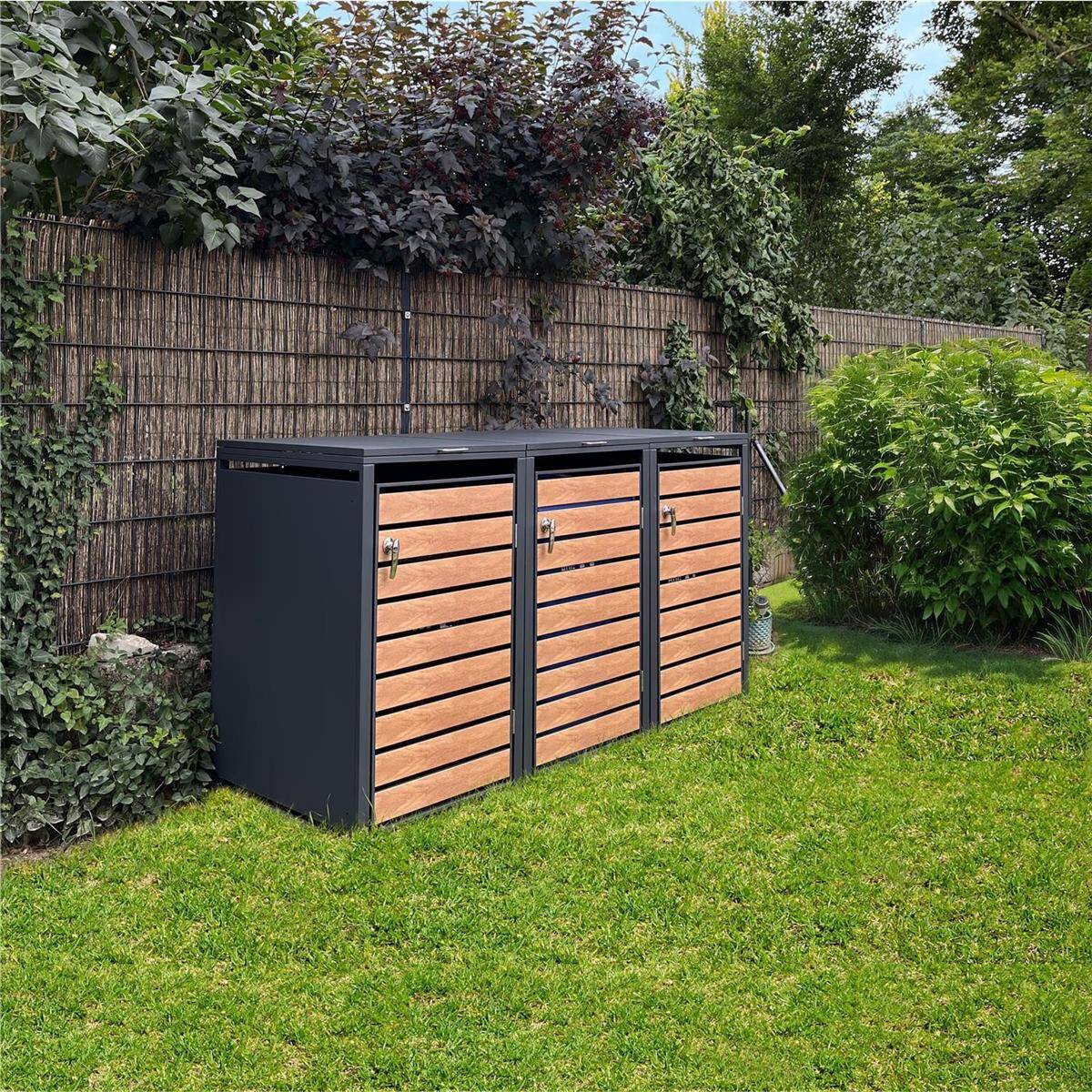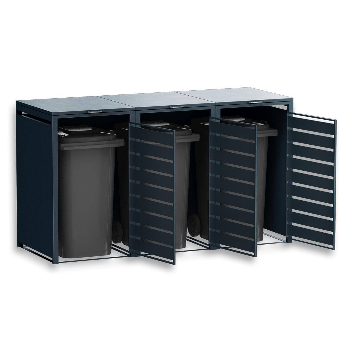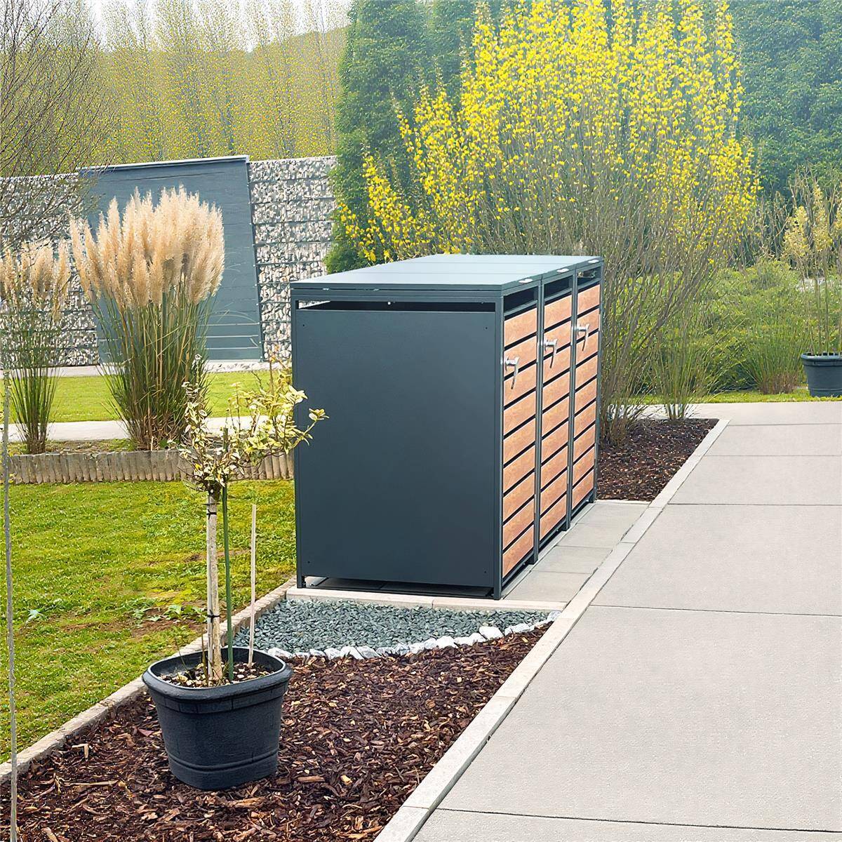 Metzler Mülltonnenbox aus witterungsbeständig pulverbeschichtetem Stahl mit praktischem Automatikdeckel für 3 Mülltonnen mit 60-240 Liter Fassungsvermögen