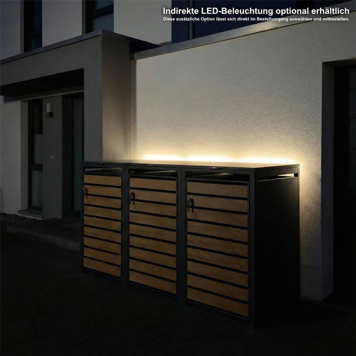 Metzler MĂĽlltonnenboxen aus massivem Stahl in Holzoptik