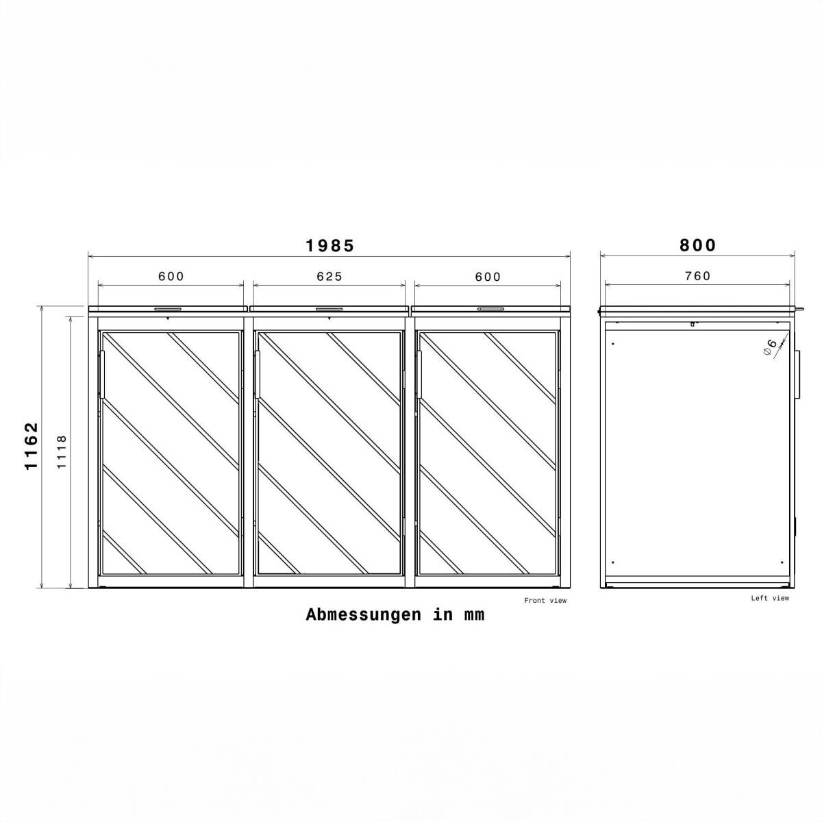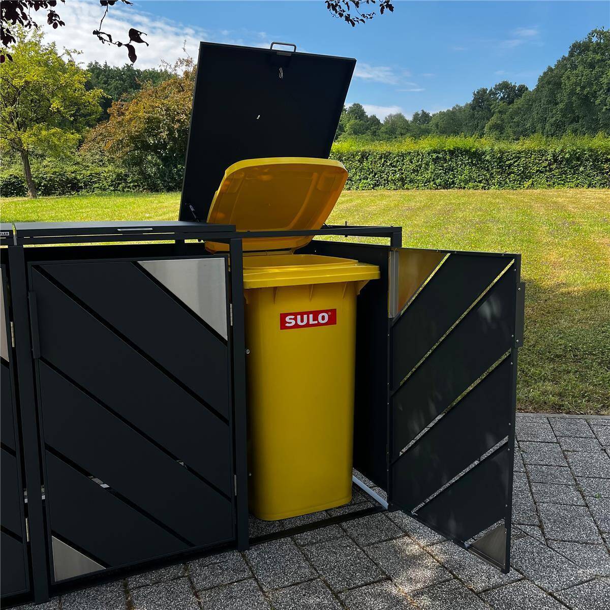 Mülltonnenbox für 3 Tonnen – robust und mit Edelstahl-Akzenten