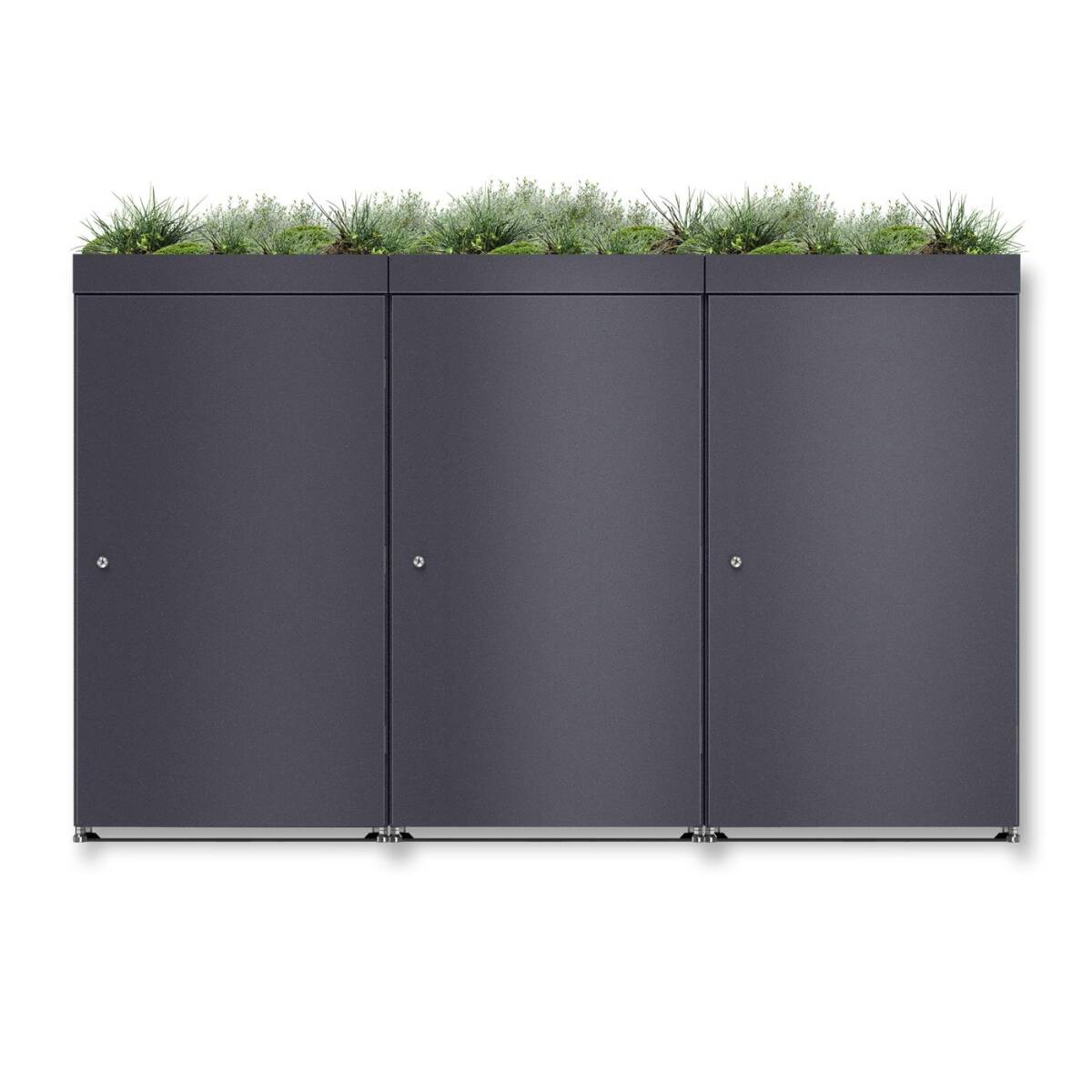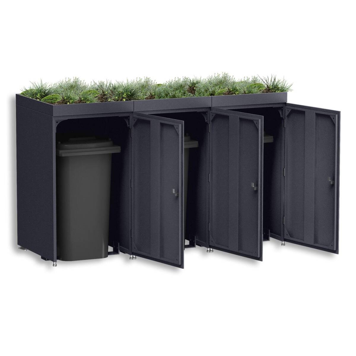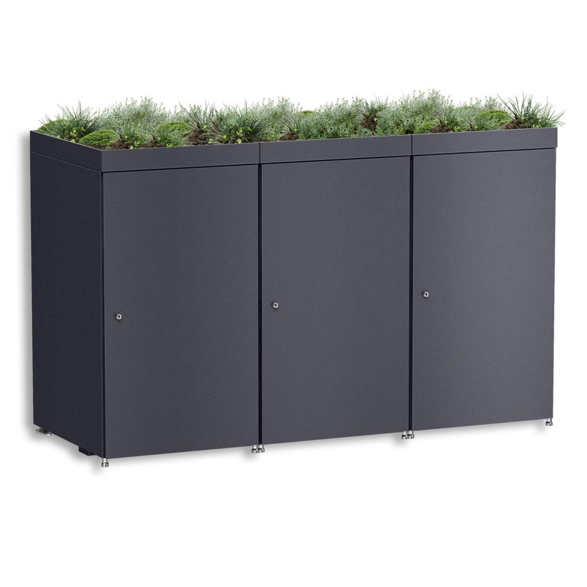 Mülltonnenbox mit Pflanzdach für drei Tonnen mit höhenverstellbaren Füßen von Metzler