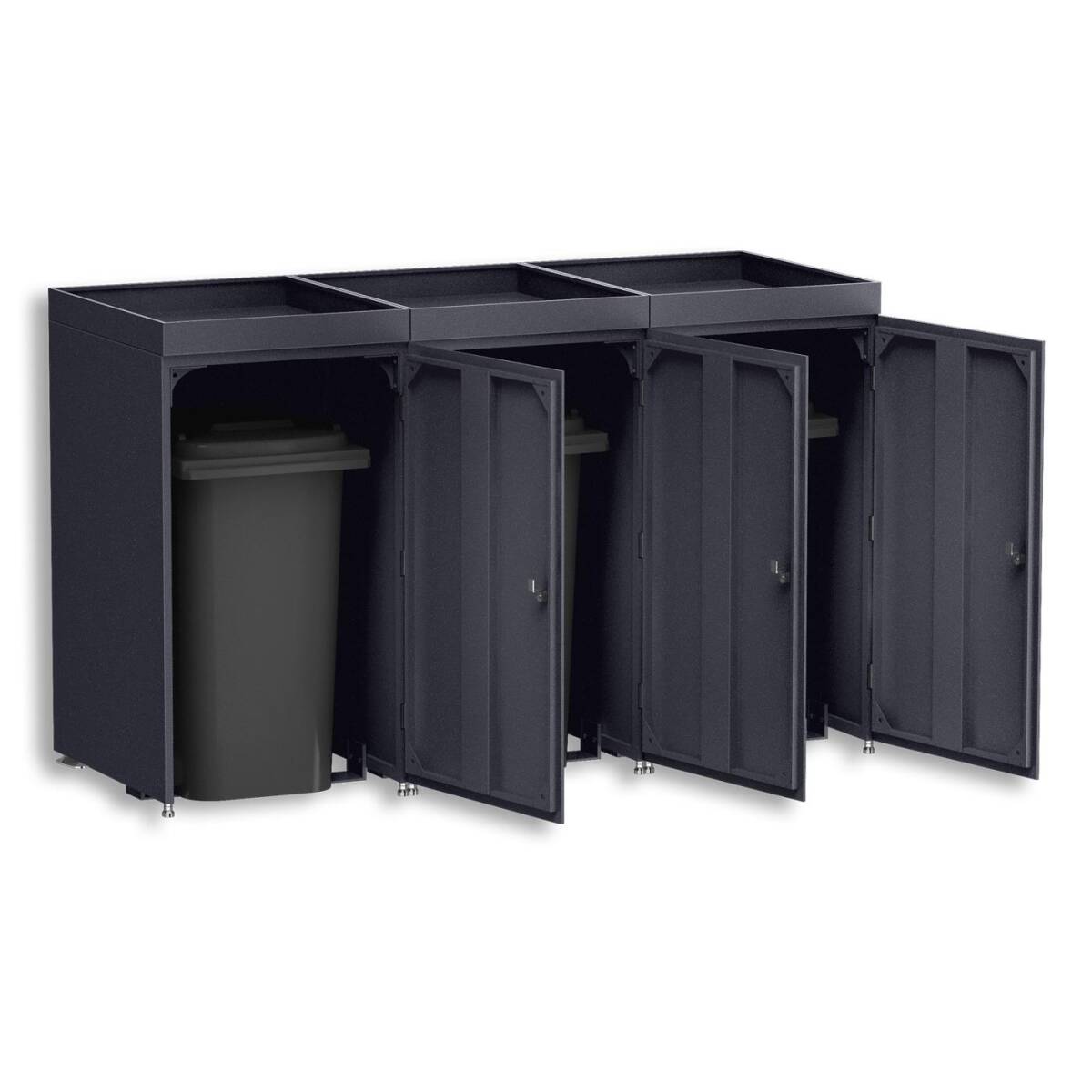 - Platz für drei Mülltonnen bis 240 L - Passend für alle gängigen Tonnengrößen