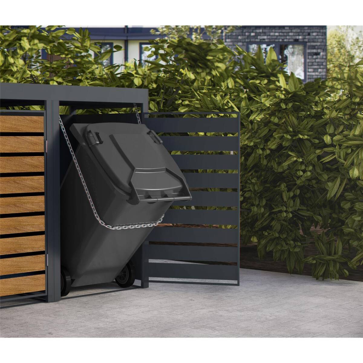 Die witterungsbeständig pulverbeschichtete Metzler Mülltonnenbox in Anthrazitgrau RAL 7016 ist die praktischste und stilvollste Lösung, um Ihre Mülltonnen diskret und ordentlich zu verstauen. In bekannter Metzler Qualität aus hochwertigem Stahl hergestellt, bietet diese Mülltonnenbox eine extrem langlebige, durchdachte und robuste Konstruktion, die dem jahrelangen Gebrauch auch unter widrigsten Umgebungsbedingungen standzuhalten.