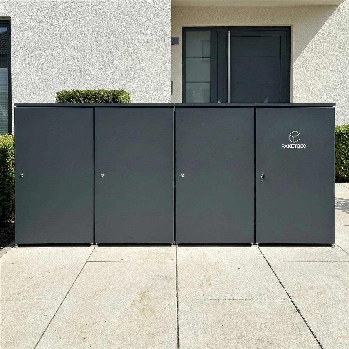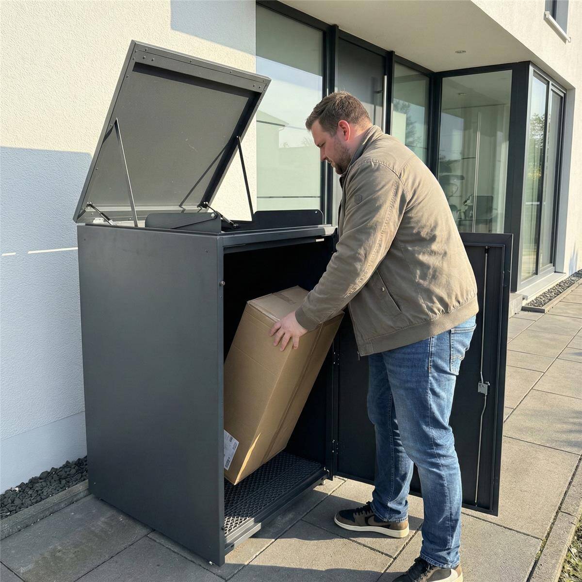 Dank des großzügigen Innenvolumens eignet sich die Paketbox sowohl für mehrere Pakete gleichzeitig als auch für größere Sendungen. Die geschlossene Konstruktion sorgt dafür, dass Pakete geschützt und ordentlich gelagert werden.