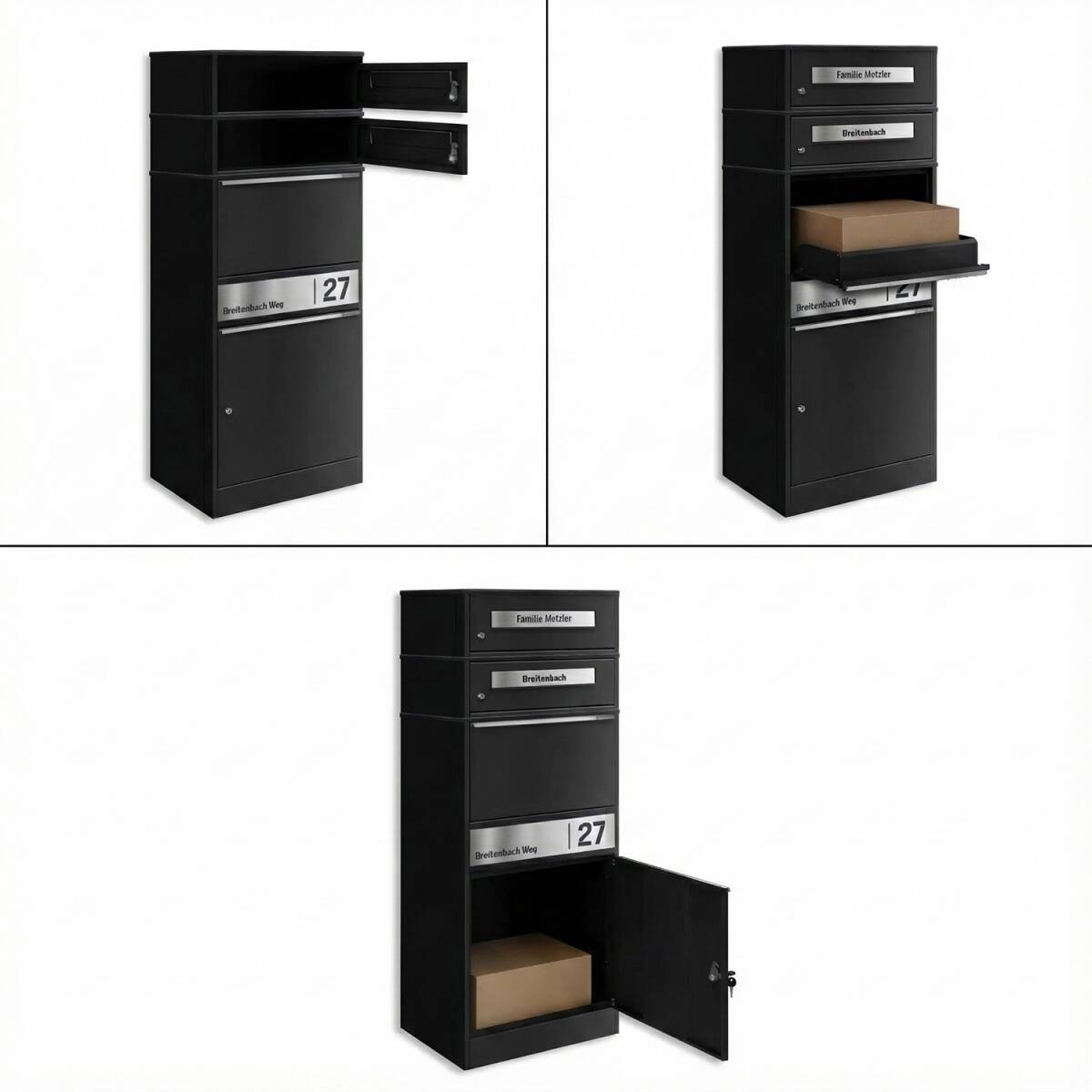 - Separate Fächer für Briefe und Pakete – eine Paketbox mit zwei Brieffächern