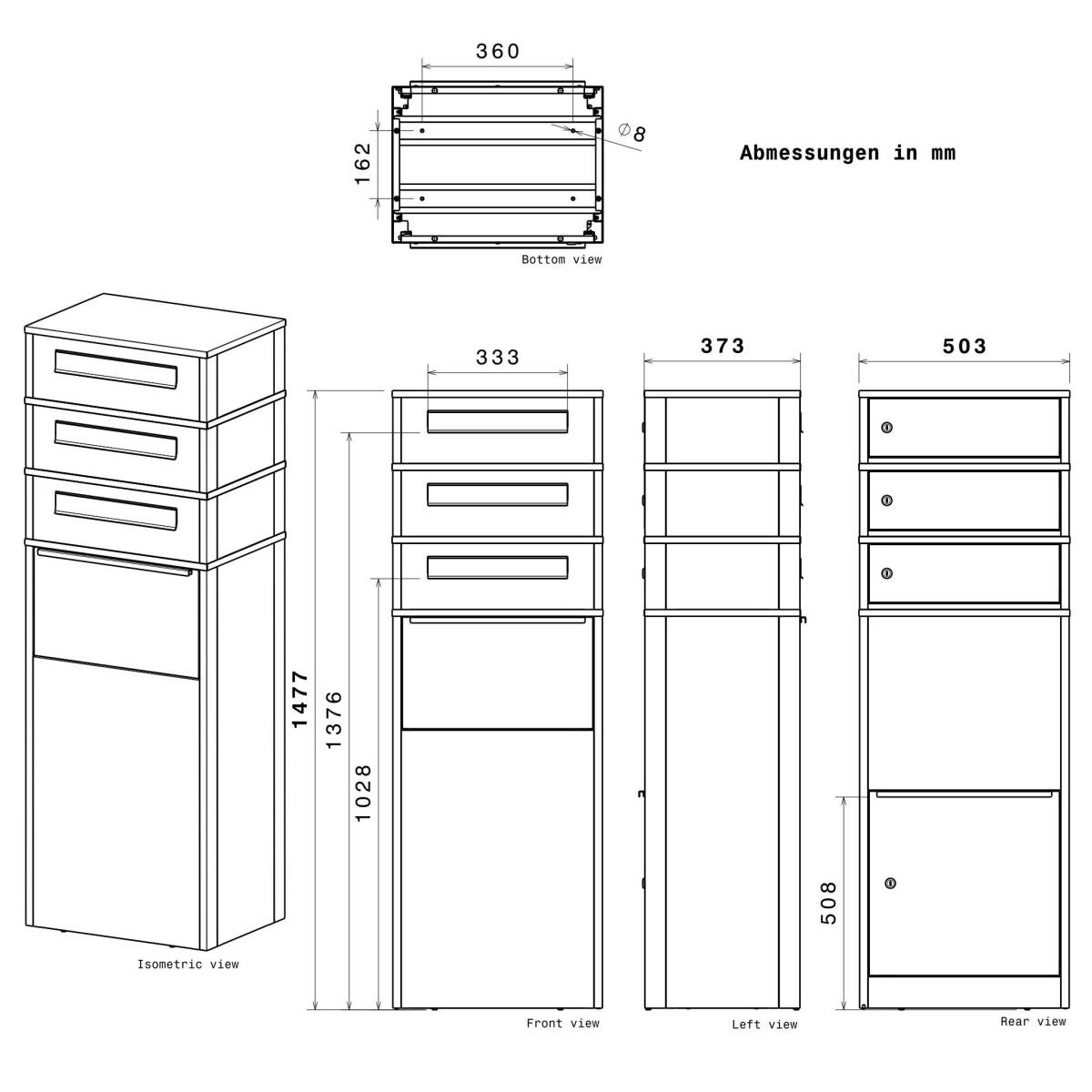 - Anzahl der Briefkastenfächer: 3