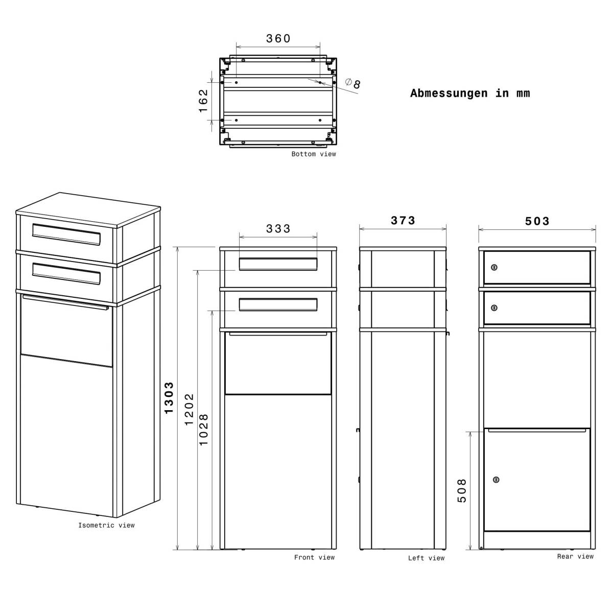 Diese Ausführung ist besonders praktisch bei freistehender Montage oder wenn die Box an einem Zaun platziert wird.