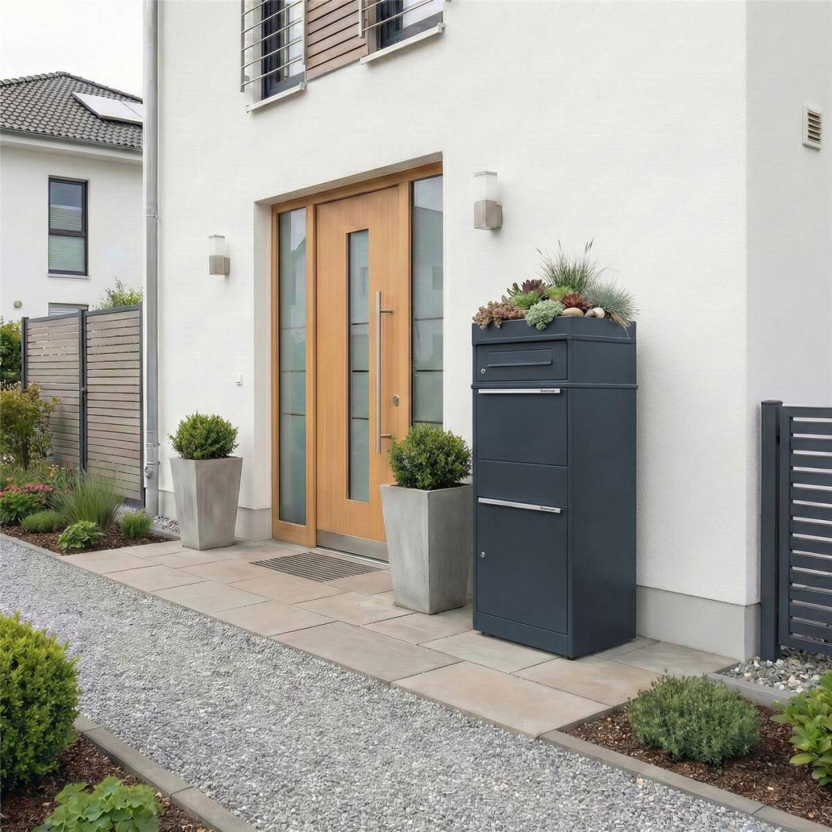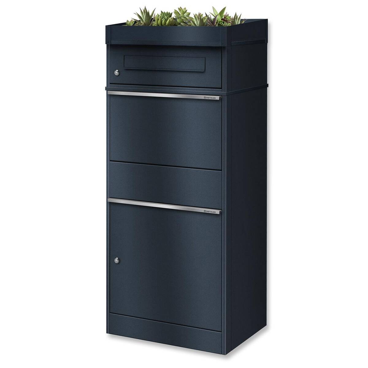 Metzler Paketbox mit Pflanzdach rostfrei und massiv, Modell Bispo
