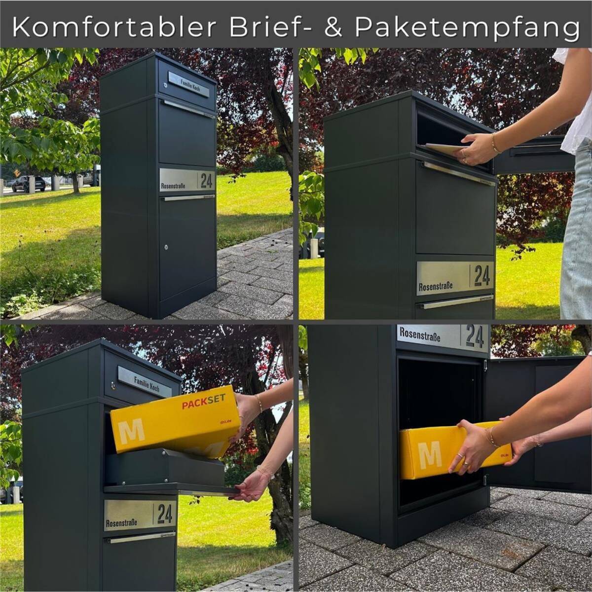 - Zwei separate Fächer für Briefe und Pakete / Päckchen